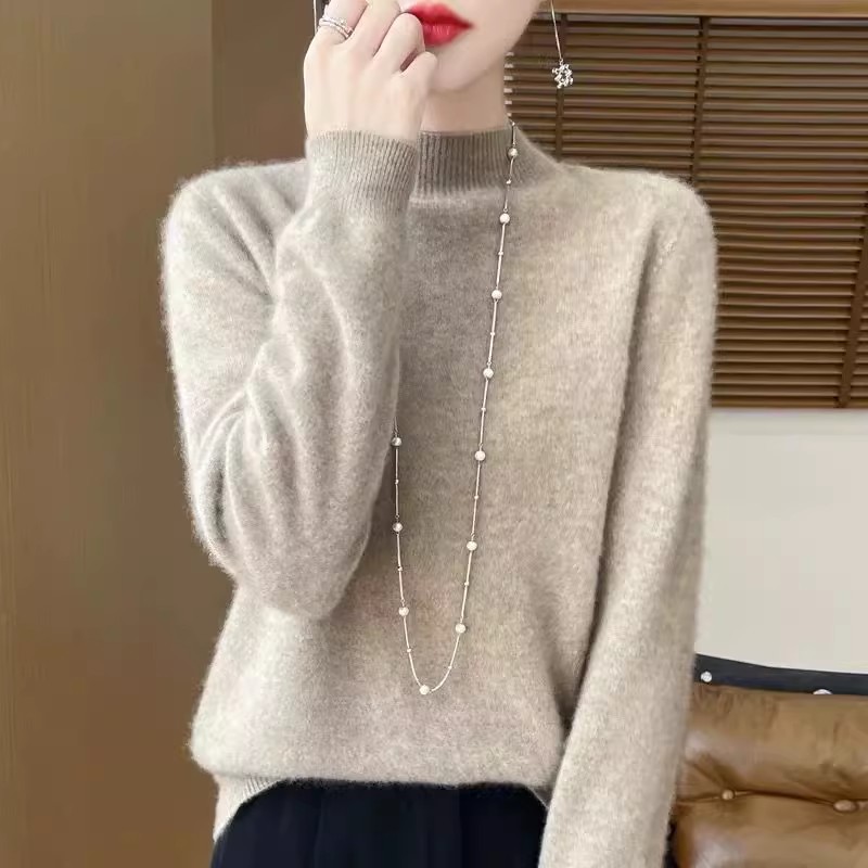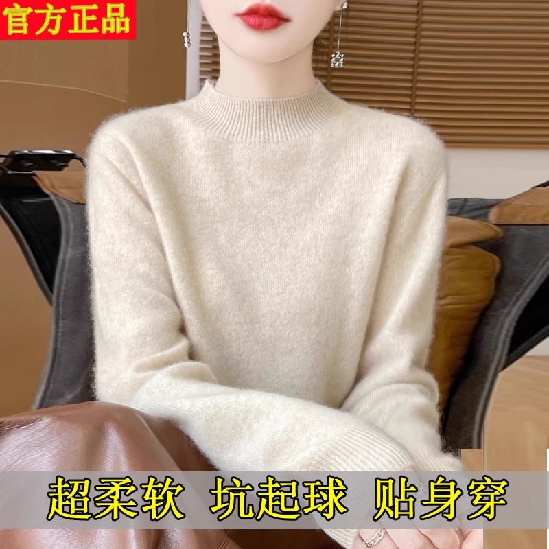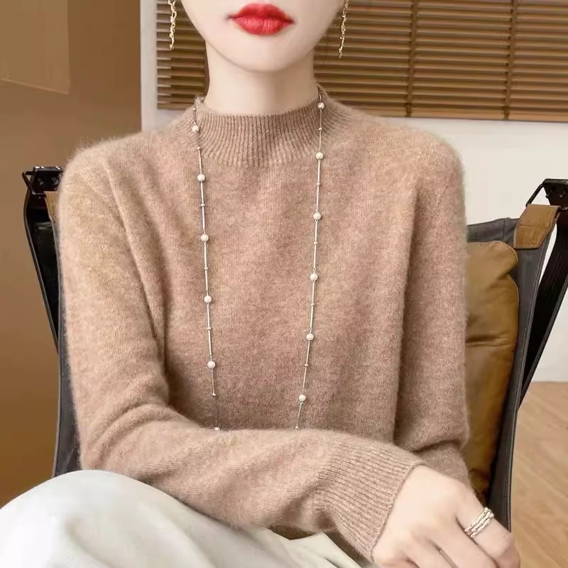 2025新款100%纯羊绒衫女圆领宽松内搭针织显瘦打底衫秋冬新款毛衣