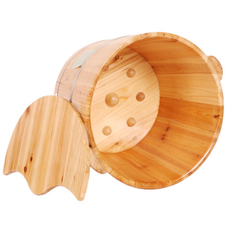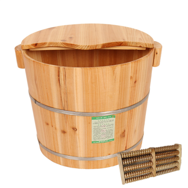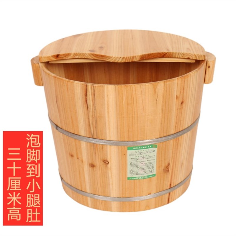 30cm 高带盖香杉木洗脚木桶z家用足浴盆带珠泡脚木桶洗脚盆小腿肚