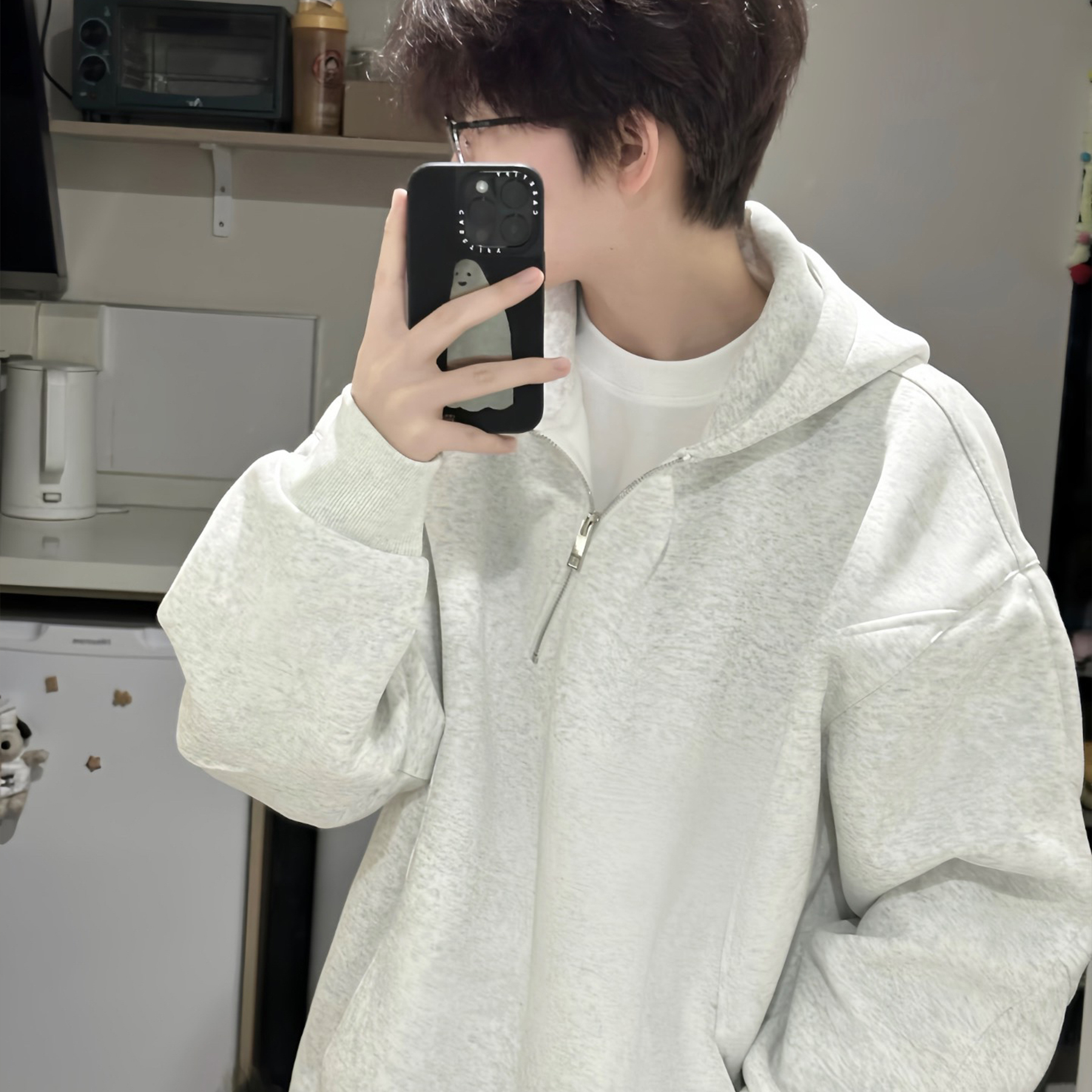 美式高街斜拉链连帽卫衣男女款秋季宽松青少年情侣装字母刺绣外套