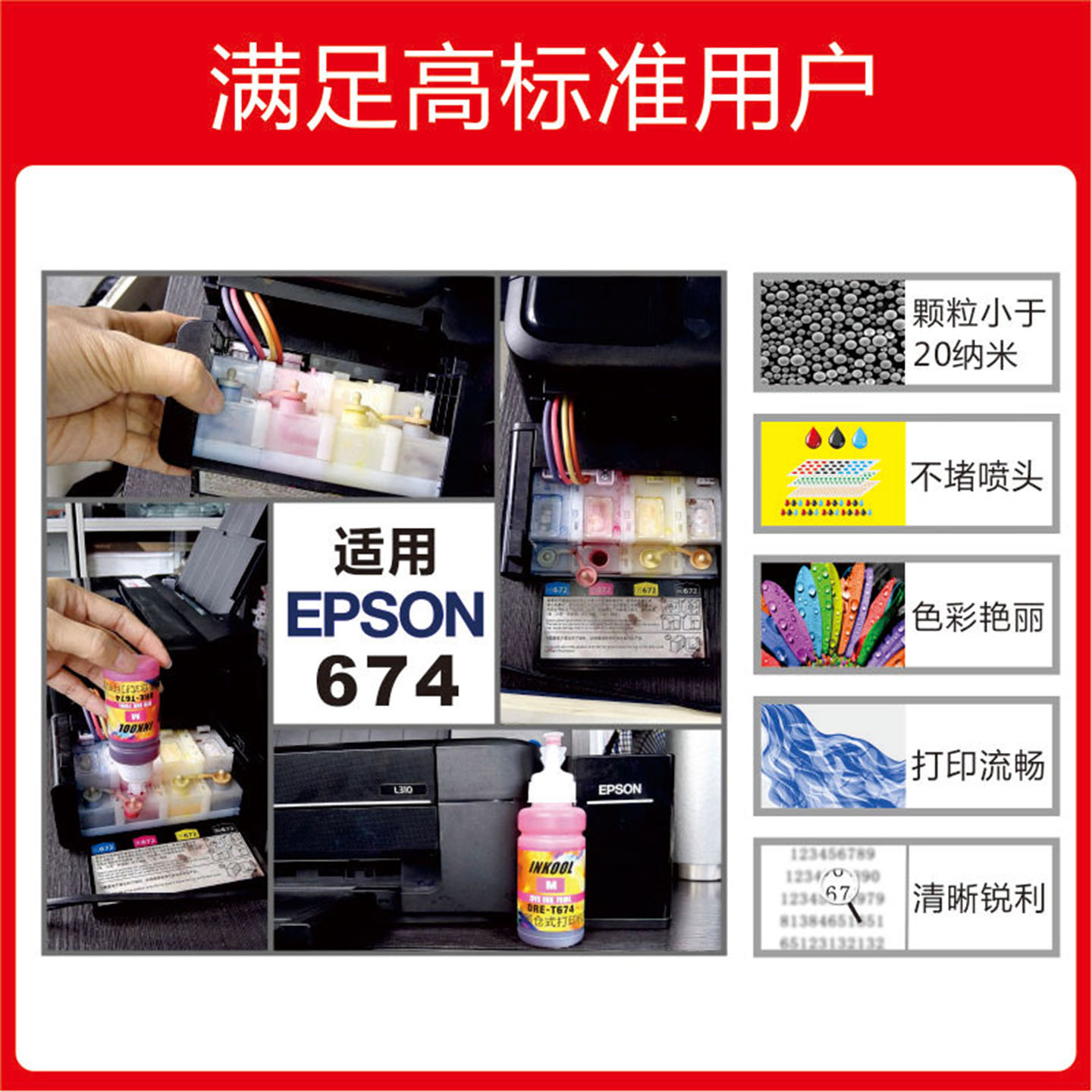 inkool适用爱普生674墨水T6741连供L805 L850L101 L111 L201 L211 L301喷墨打印机L351 L353 L358 L1800墨水