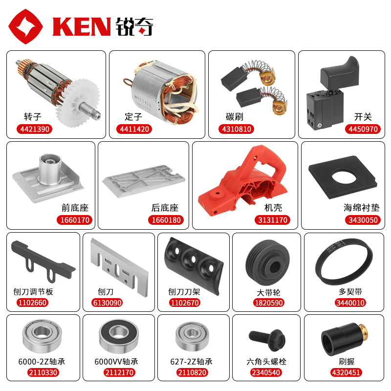 KEN锐奇电刨1982原装配件刨刀皮带轮件转子碳刷定子开关刀夹底板