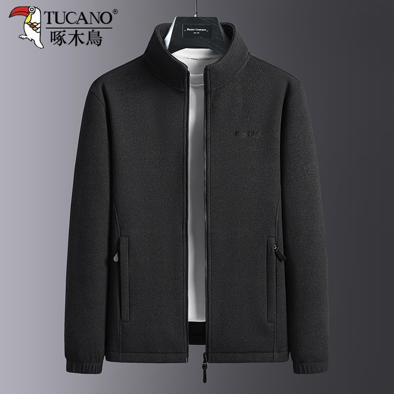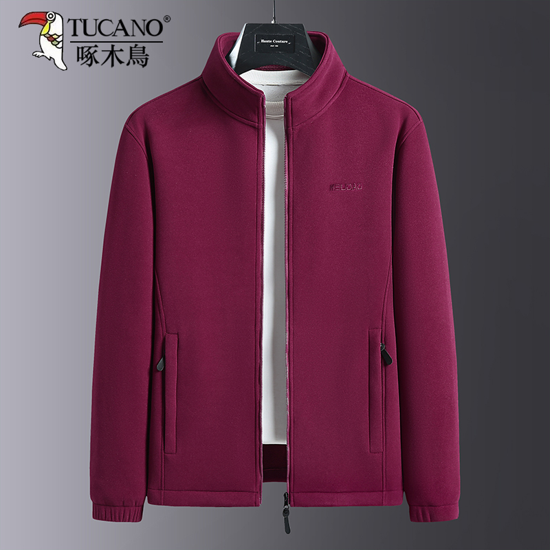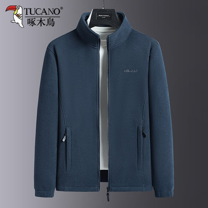 啄木鸟摇粒绒外套男士秋冬季中老年双面抓绒上衣爸爸加绒加厚夹克