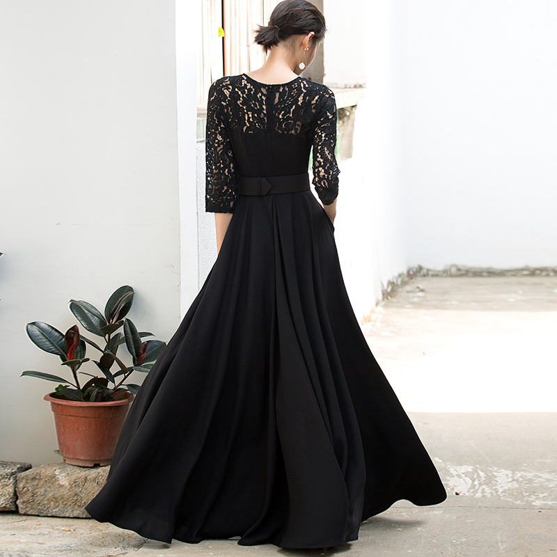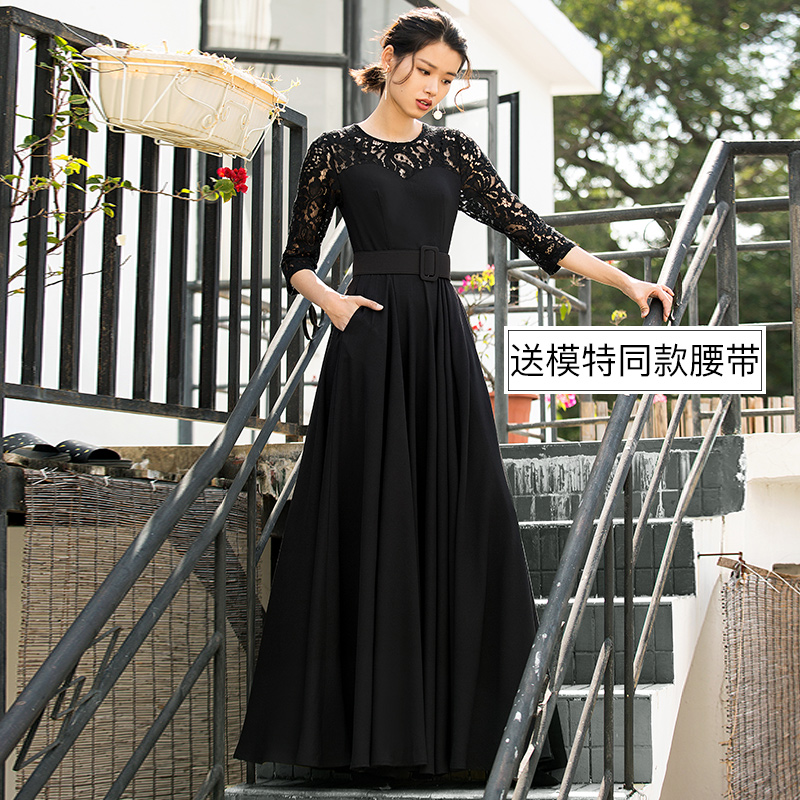 2025黑色蕾丝连衣裙女夏装镂空复古性感文艺超长拖地显瘦大摆长裙