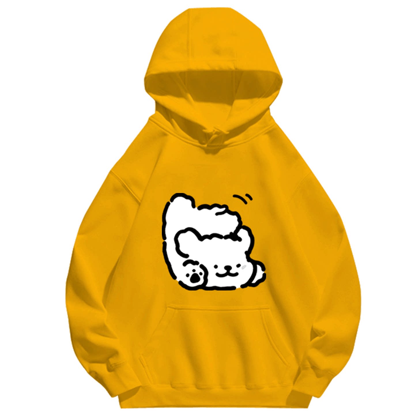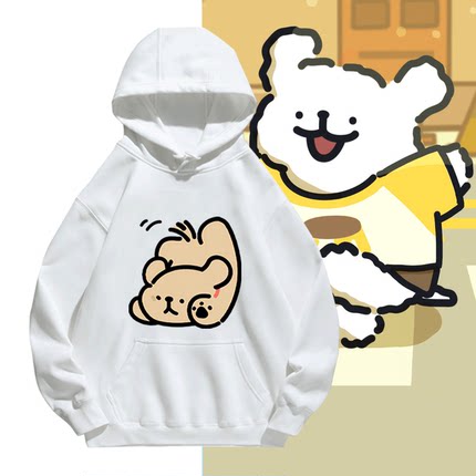 线条小狗卡通联名周边男女情侣秋冬休闲百搭可定制潮加绒带帽卫衣