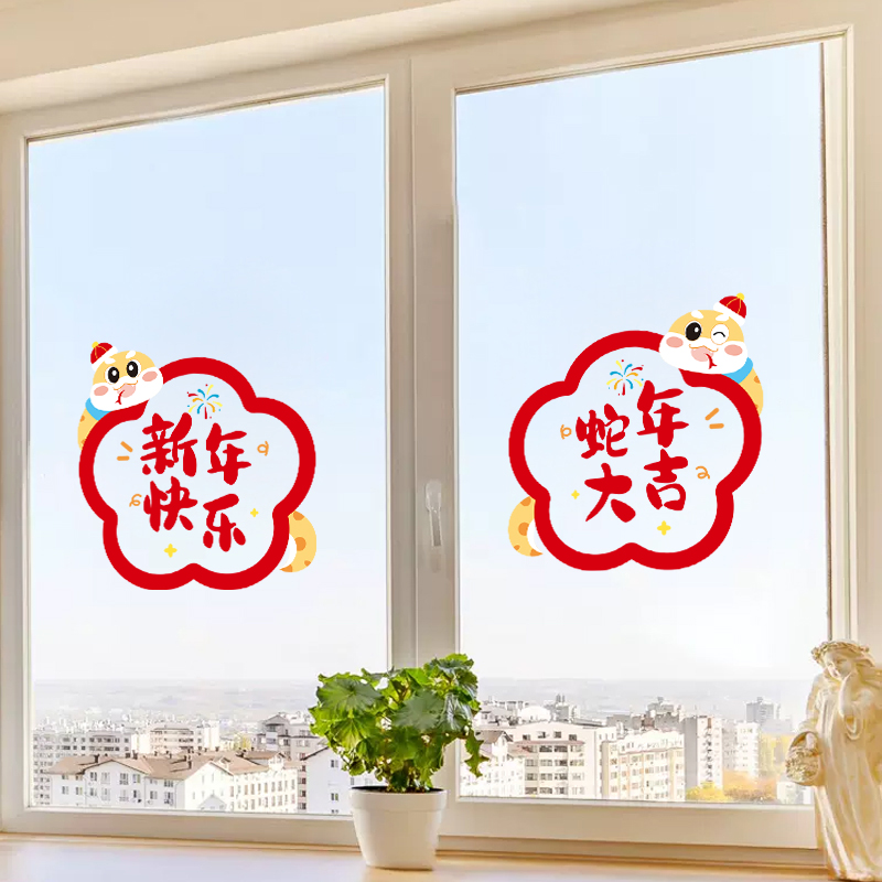 新年窗花2025年新款蛇年福字门贴过年剪纸静电玻璃贴春节装饰用品