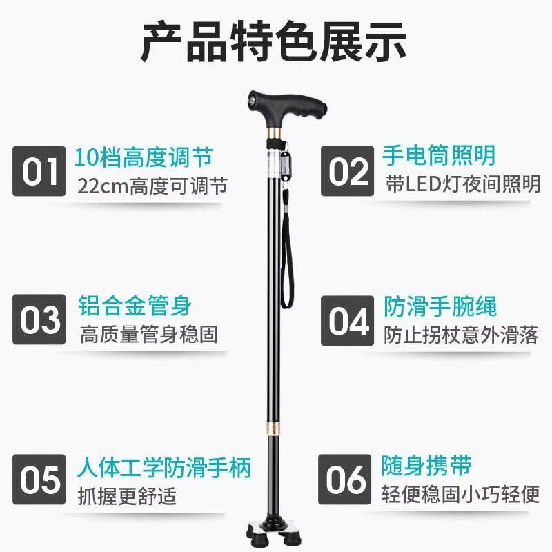 老人拐杖老年人专用拐棍四脚轻便防滑手杖防摔倒捌杖伸缩带灯登山