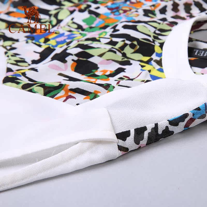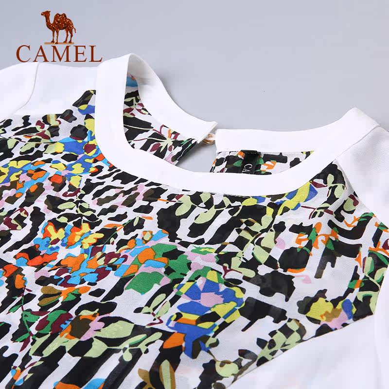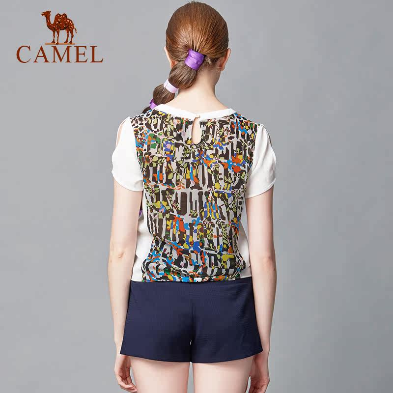 【非卖品】Camel/骆驼女装 数码印花露肩短款上衣 短袖雪纺衫