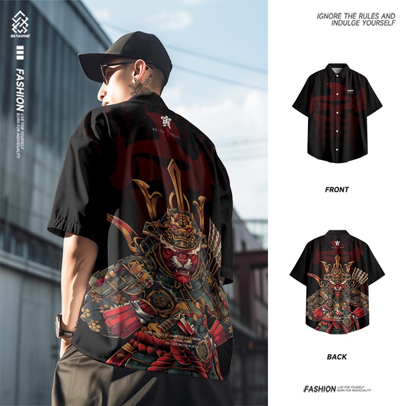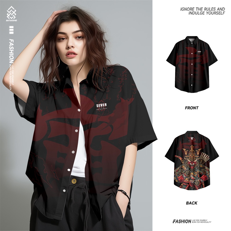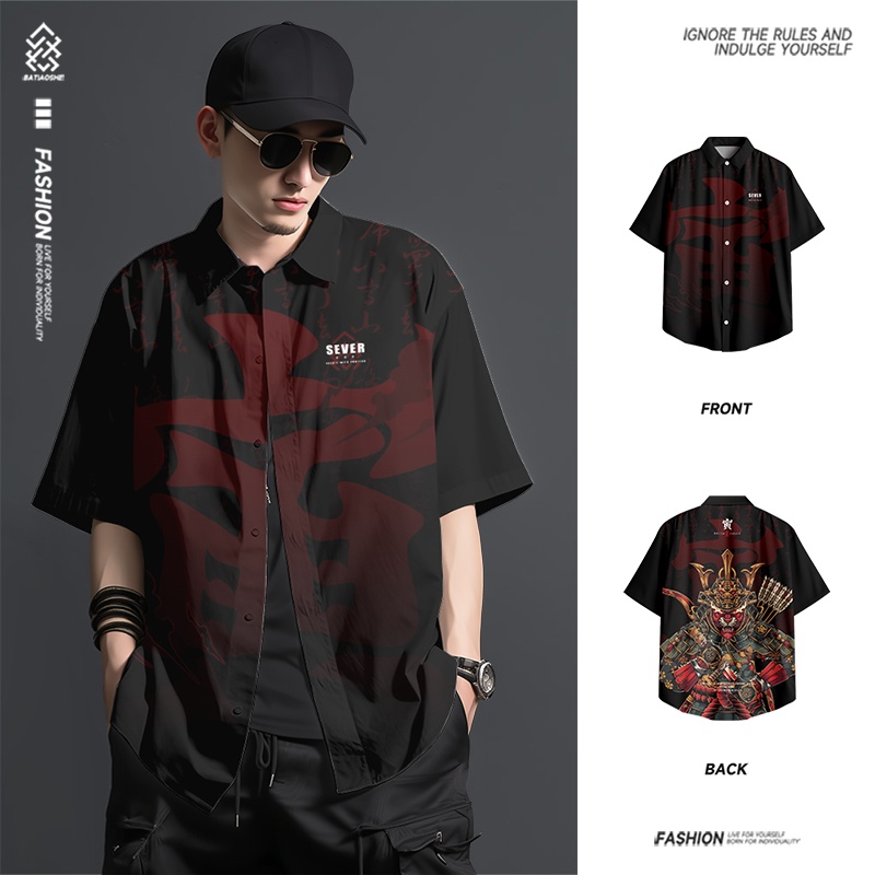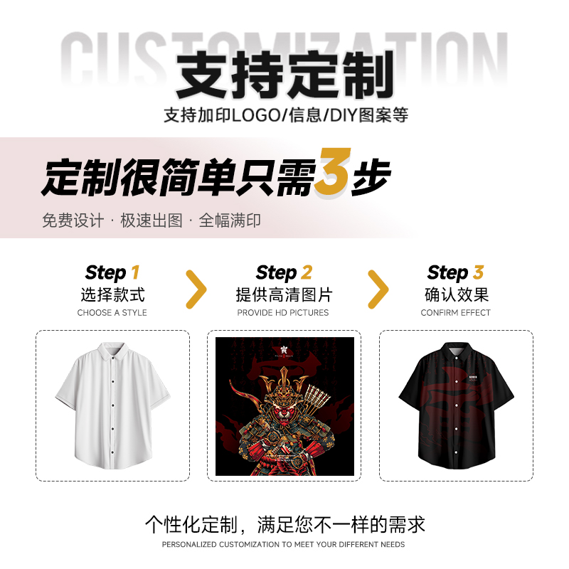 夏季新款美式潮流休闲短袖衬衫男士宽松薄款国潮上衣定制外套男装