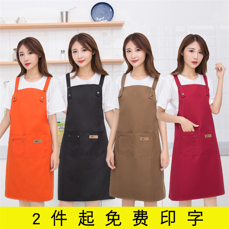 围裙logo定制奶茶店女时尚美甲咖啡店防水黑色男餐厅服务员工作服