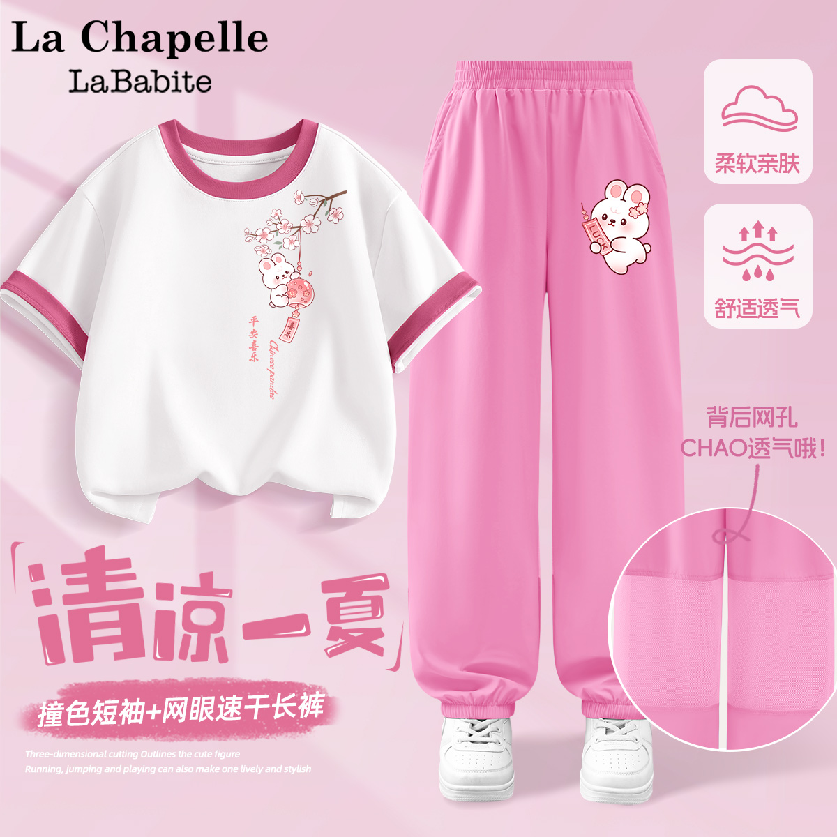 拉夏贝尔联名童装女童夏装套装2025新款短袖速干裤子儿童衣服女孩
