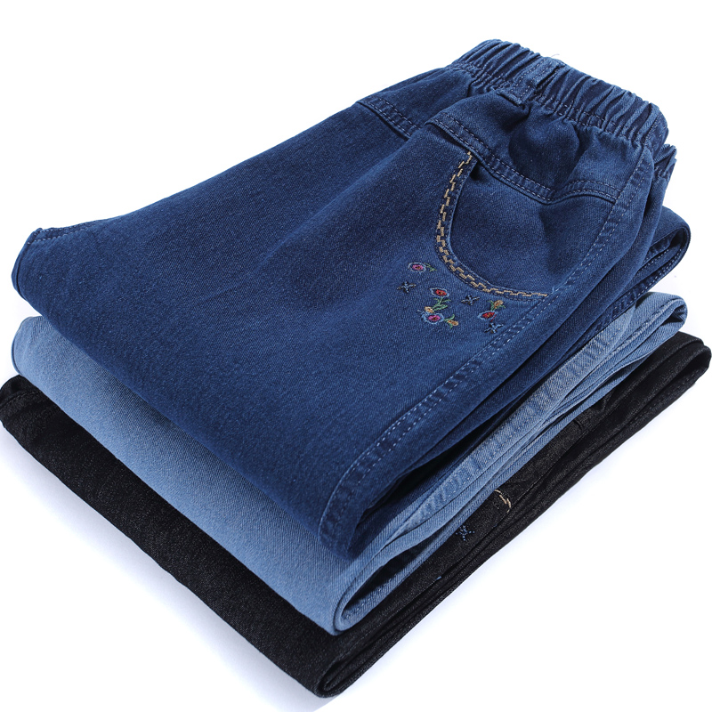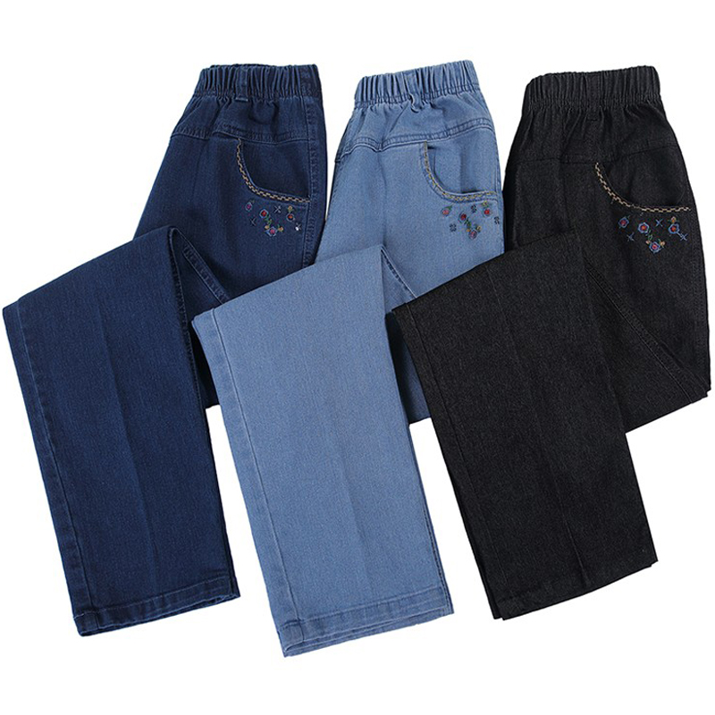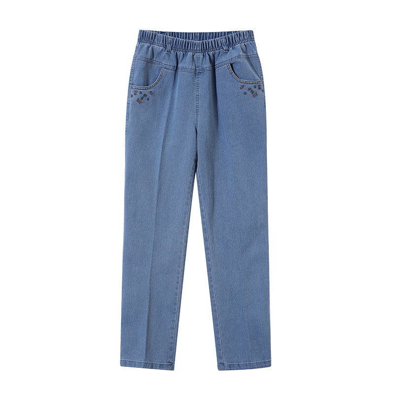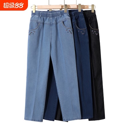 中老年女裤春秋牛仔裤老人裤妈妈裤子高腰长裤老太太夏季奶奶直筒