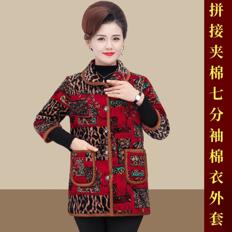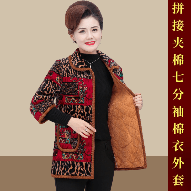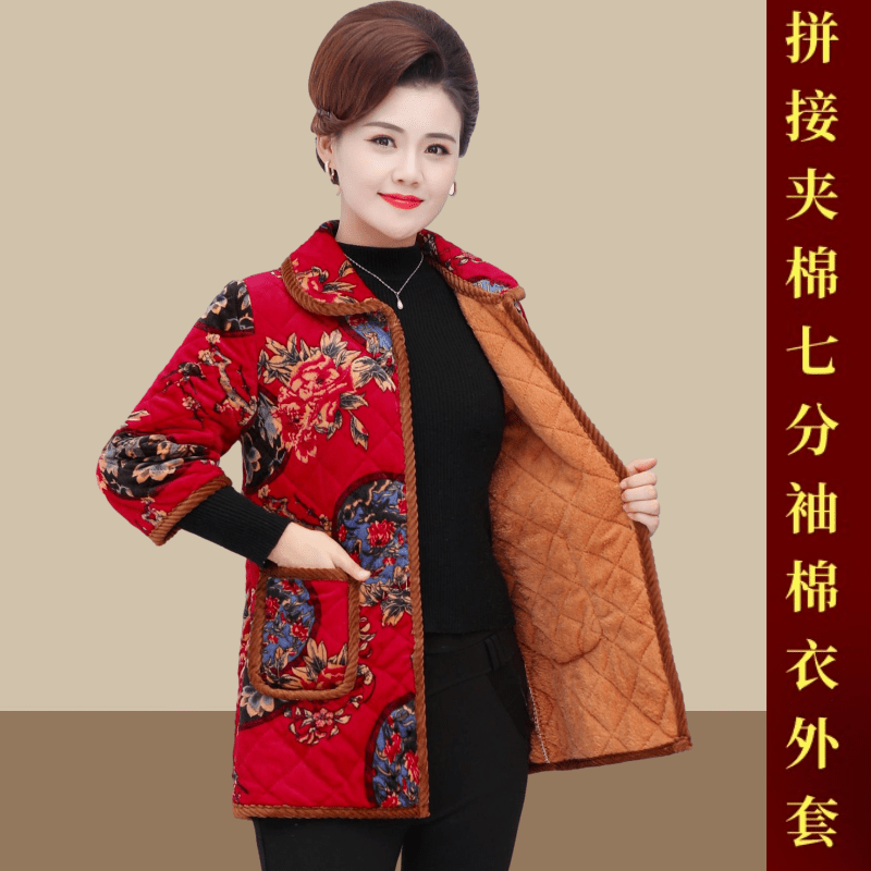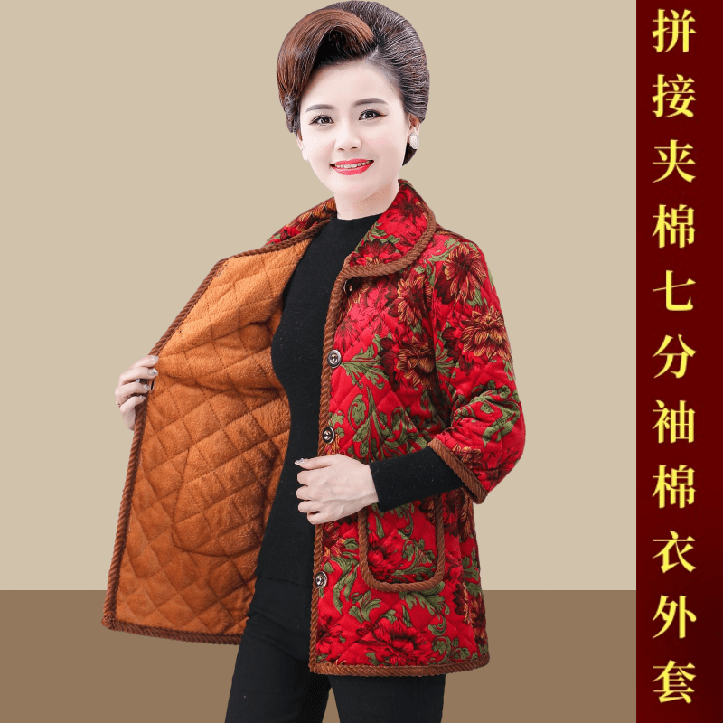 中老年女秋冬装中袖马甲奶奶加厚大码马夹60岁妈妈七分袖加绒棉衣