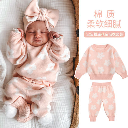 ins北欧风儿童针织衫女宝宝春秋精梳棉针织毛衣保暖内搭套装新款