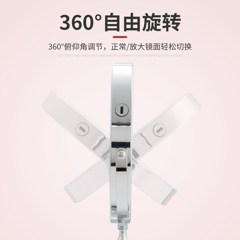 欧式台式LED化妆镜双面高清放大镜usb充电梳妆镜桌面补光镜美容镜
