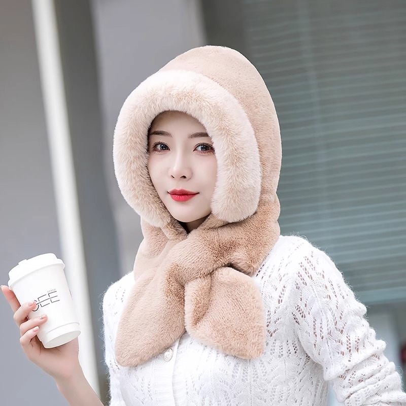 2025新款帽子女冬季防风防寒加厚保暖加绒包头护耳骑车帽毛绒围巾