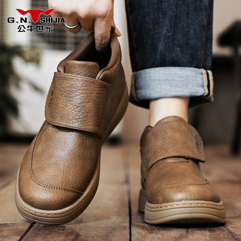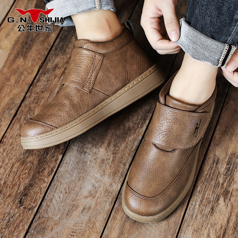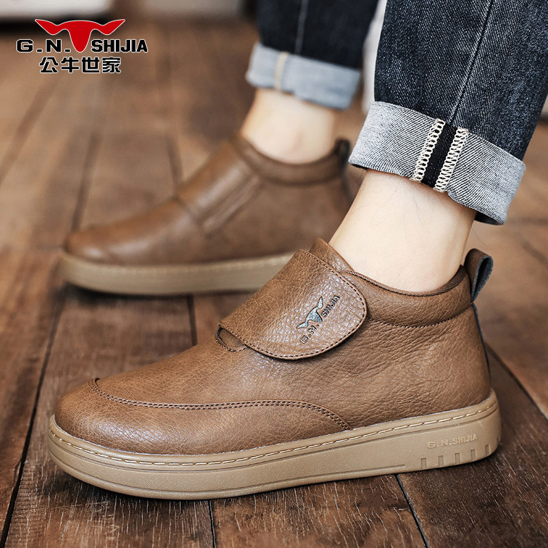 公牛世家高帮男鞋2025新款冬季休闲皮鞋男士百搭英伦风一脚蹬潮鞋
