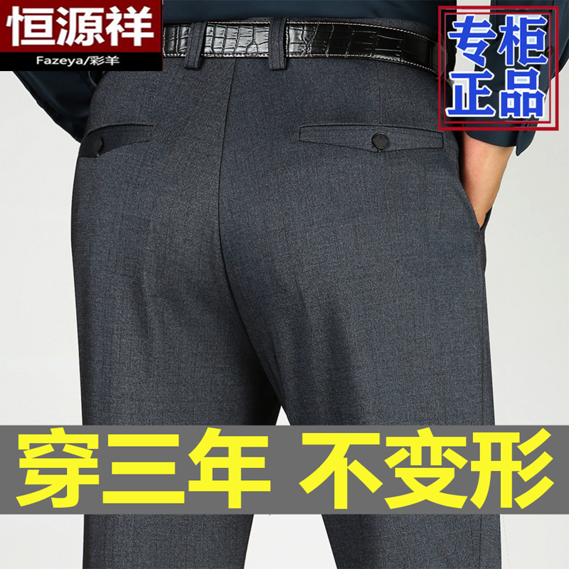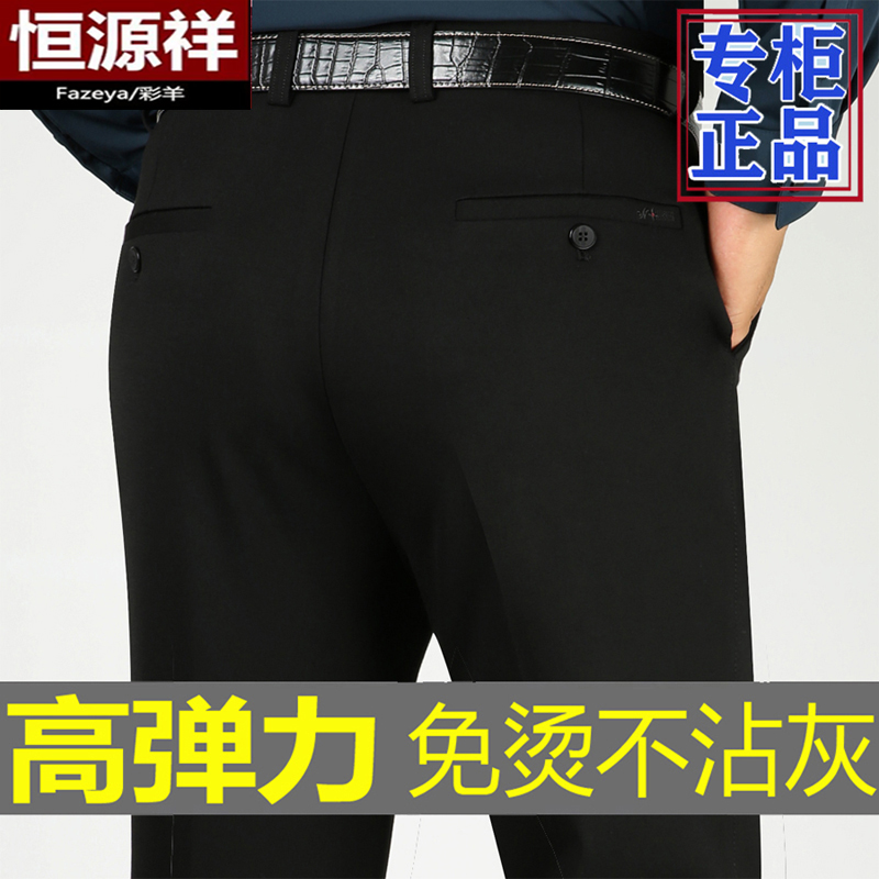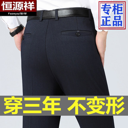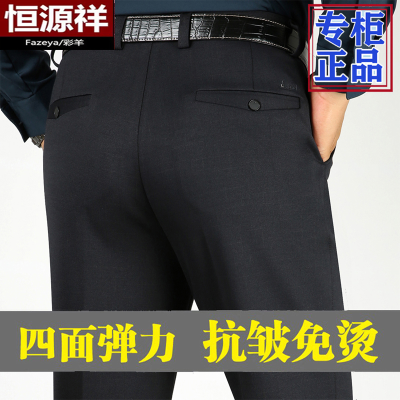 恒源祥彩羊休闲裤弹力直筒男裤中年男士春秋厚款宽松裤子秋冬西裤