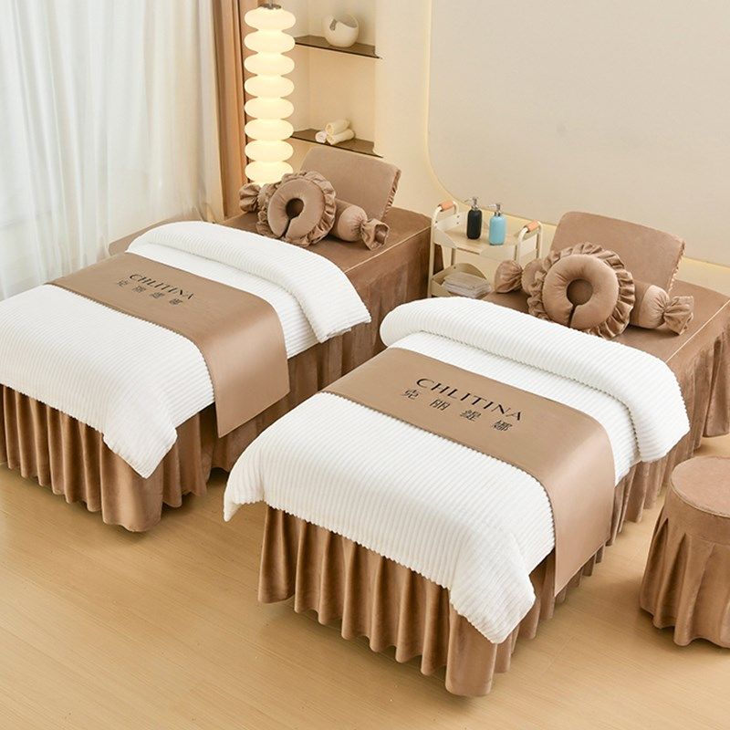 秋冬兔毛绒美容床罩四件套2024新款高级奶油风美容院按摩三四件套