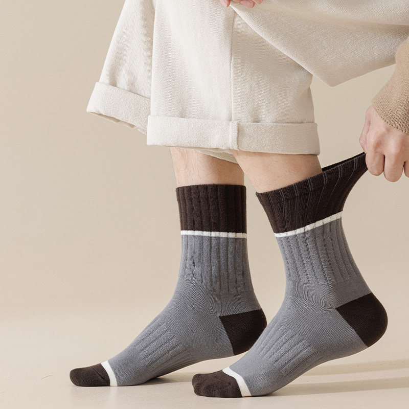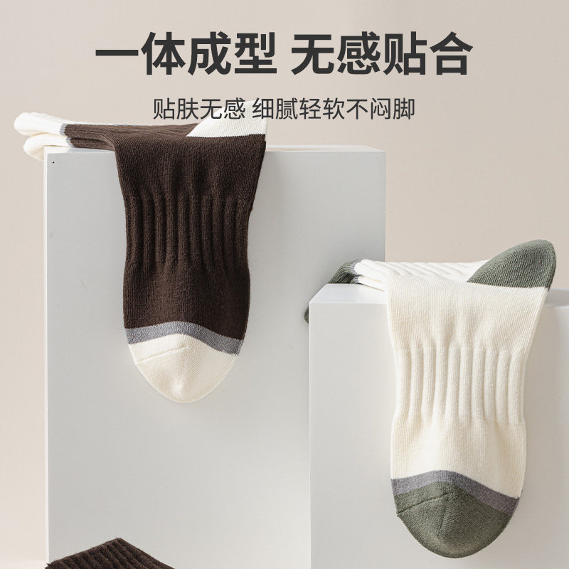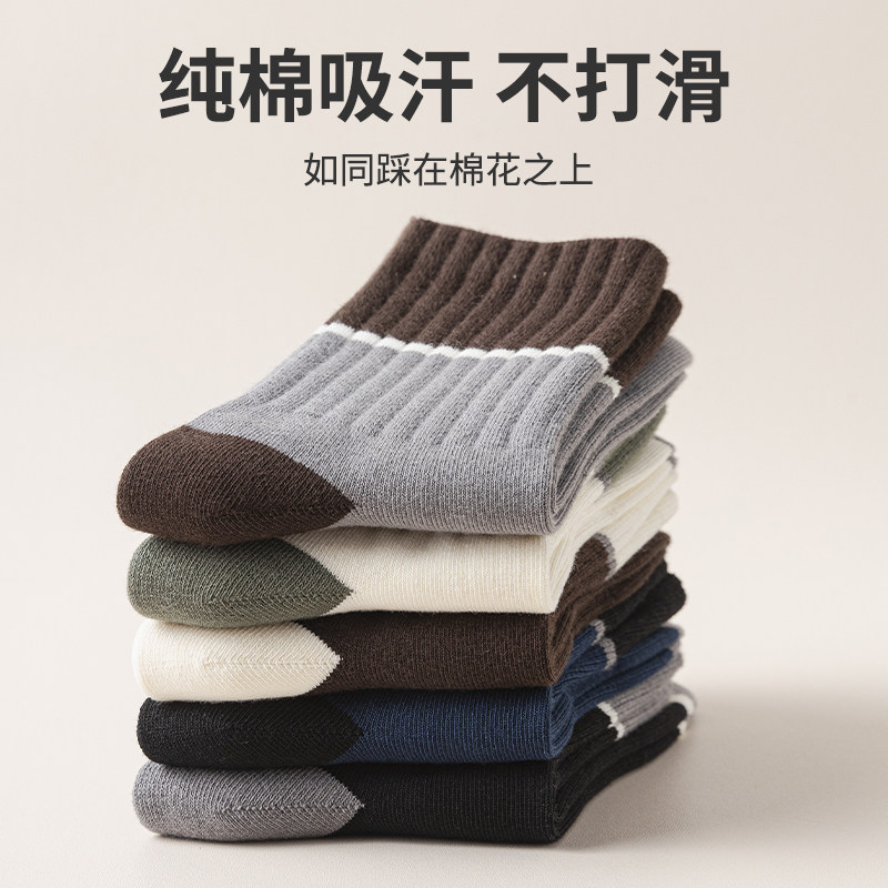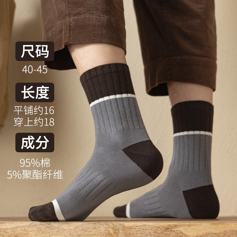95%纯棉材质秋冬季49克复古男袜青少年袜子男中筒帮耐磨吸汗防臭