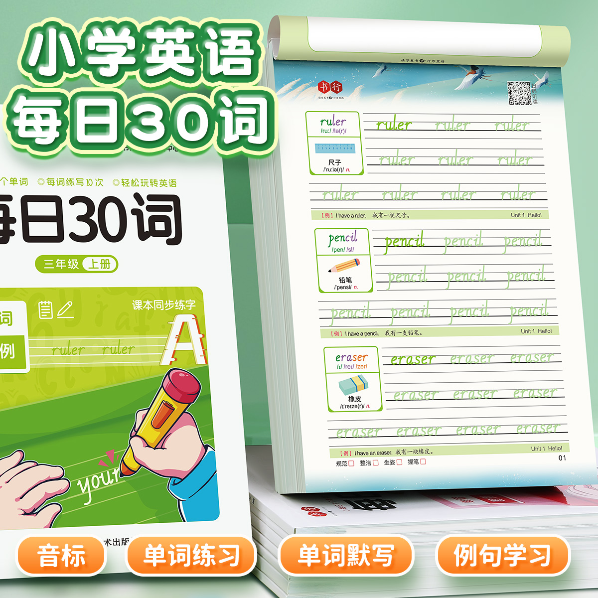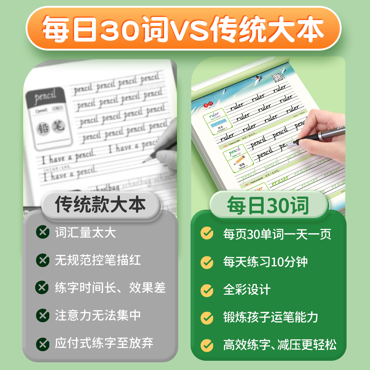 三年级上下册英语同步字帖英文字母单词默写本手写体人教版pep课本同步描红练字本小学四五六年级英语练字帖小学生专用每日一练