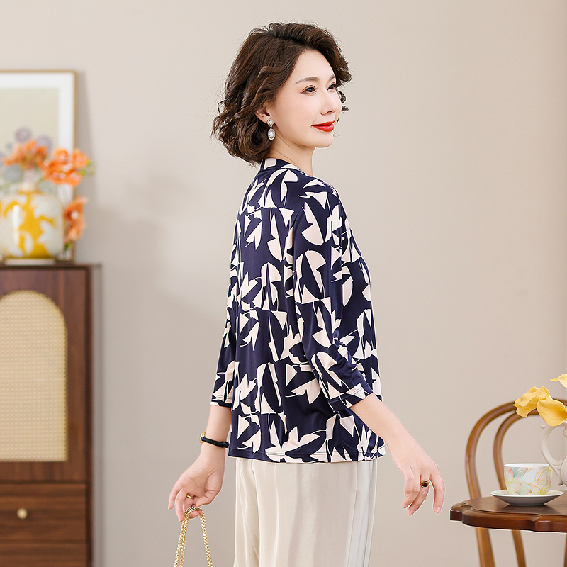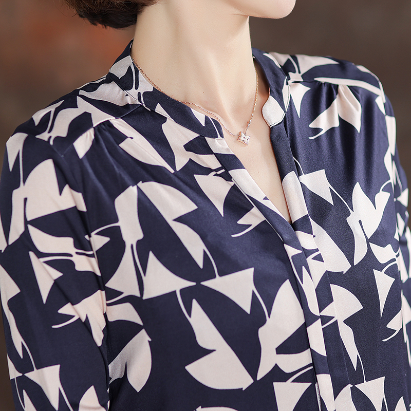 齐黛真丝桑蚕丝上衣女轻奢高级感2025春夏新款衬衣妈妈针织衫衬衫