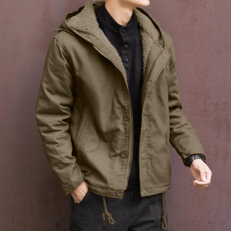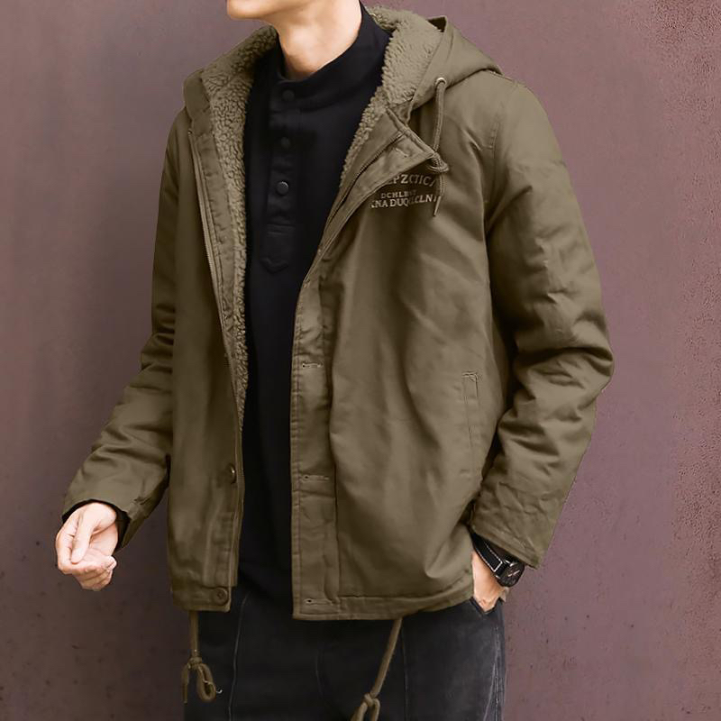 冬季新款男士加绒加厚羊羔绒外套宽松短款保暖潮流休闲连帽棉衣男