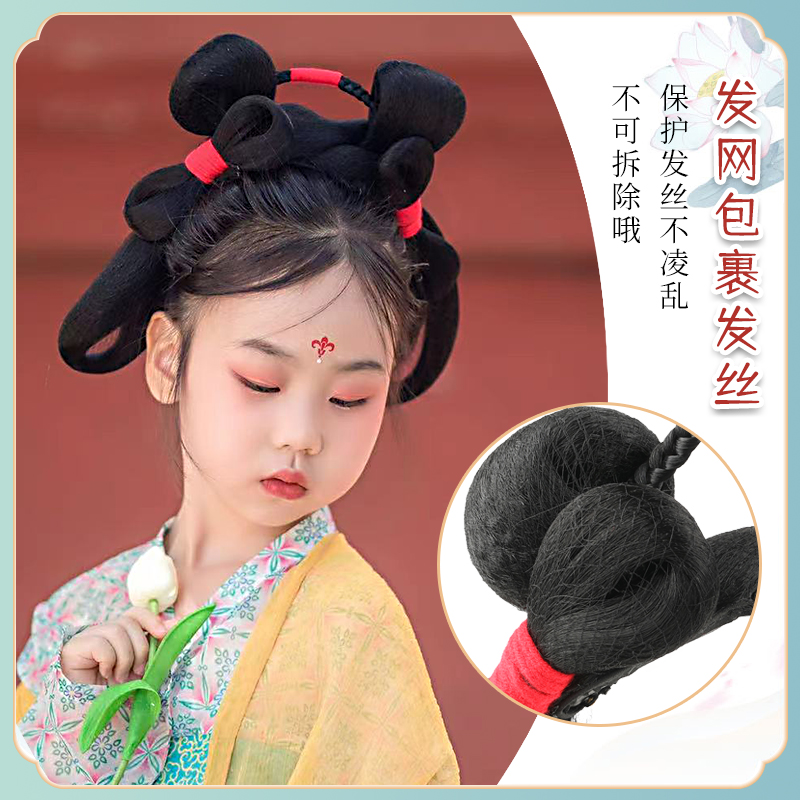 秀韵古装儿童汉服蝴蝶结兔儿发髻
