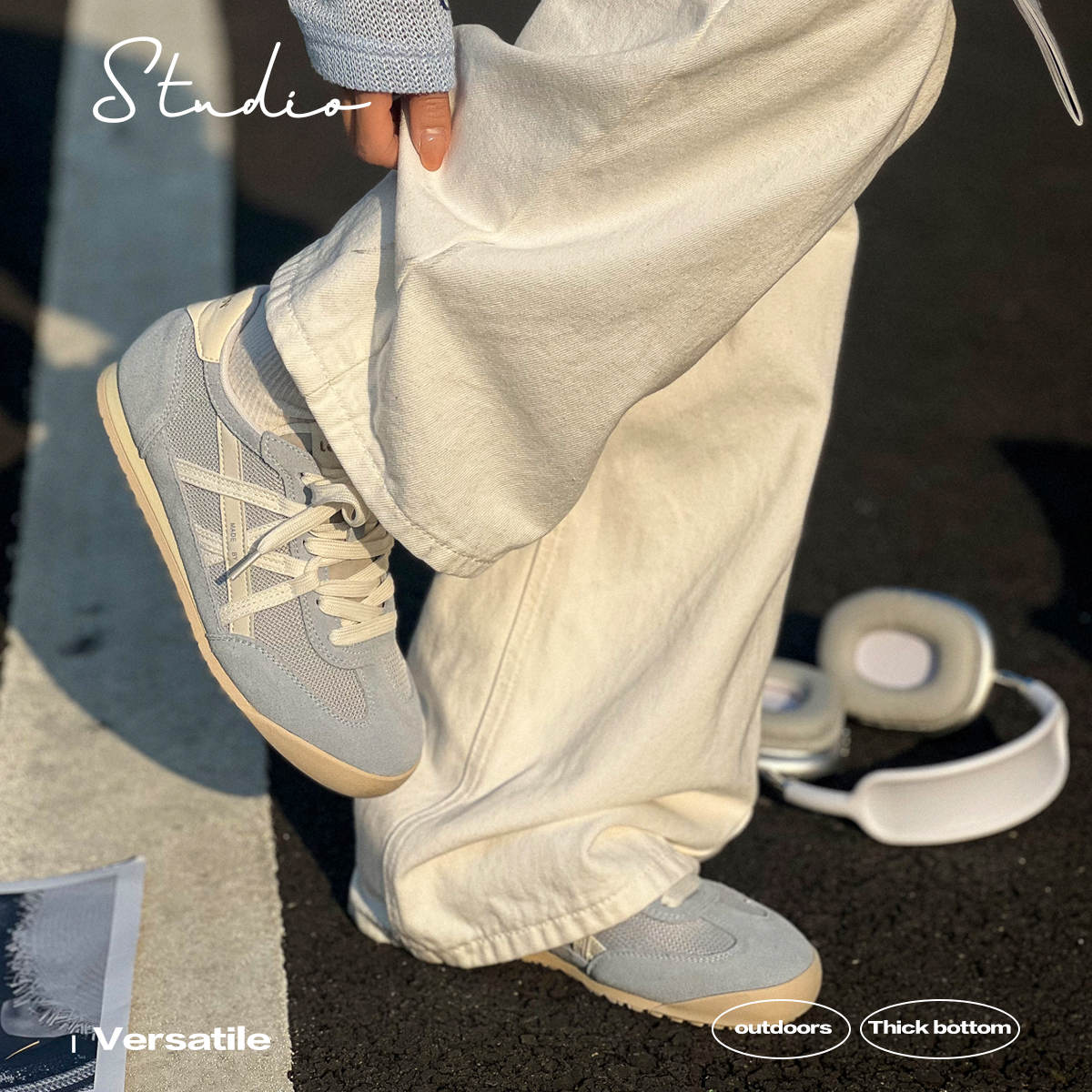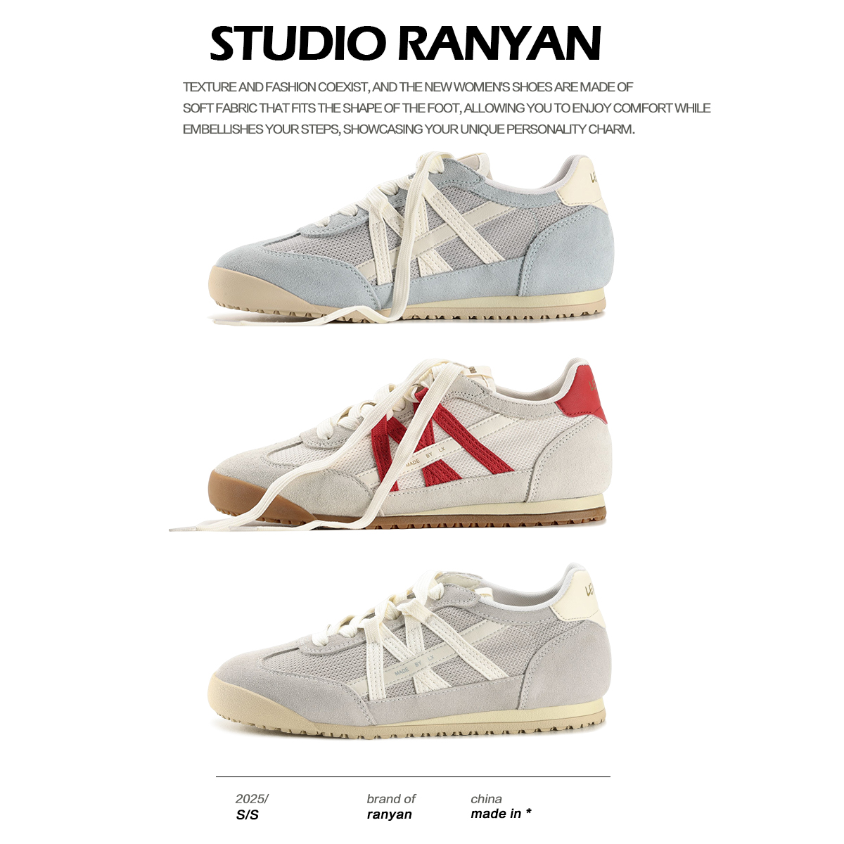 内增4cm网面透气德训鞋女冉言2025夏季新款软底舒适休闲小单鞋