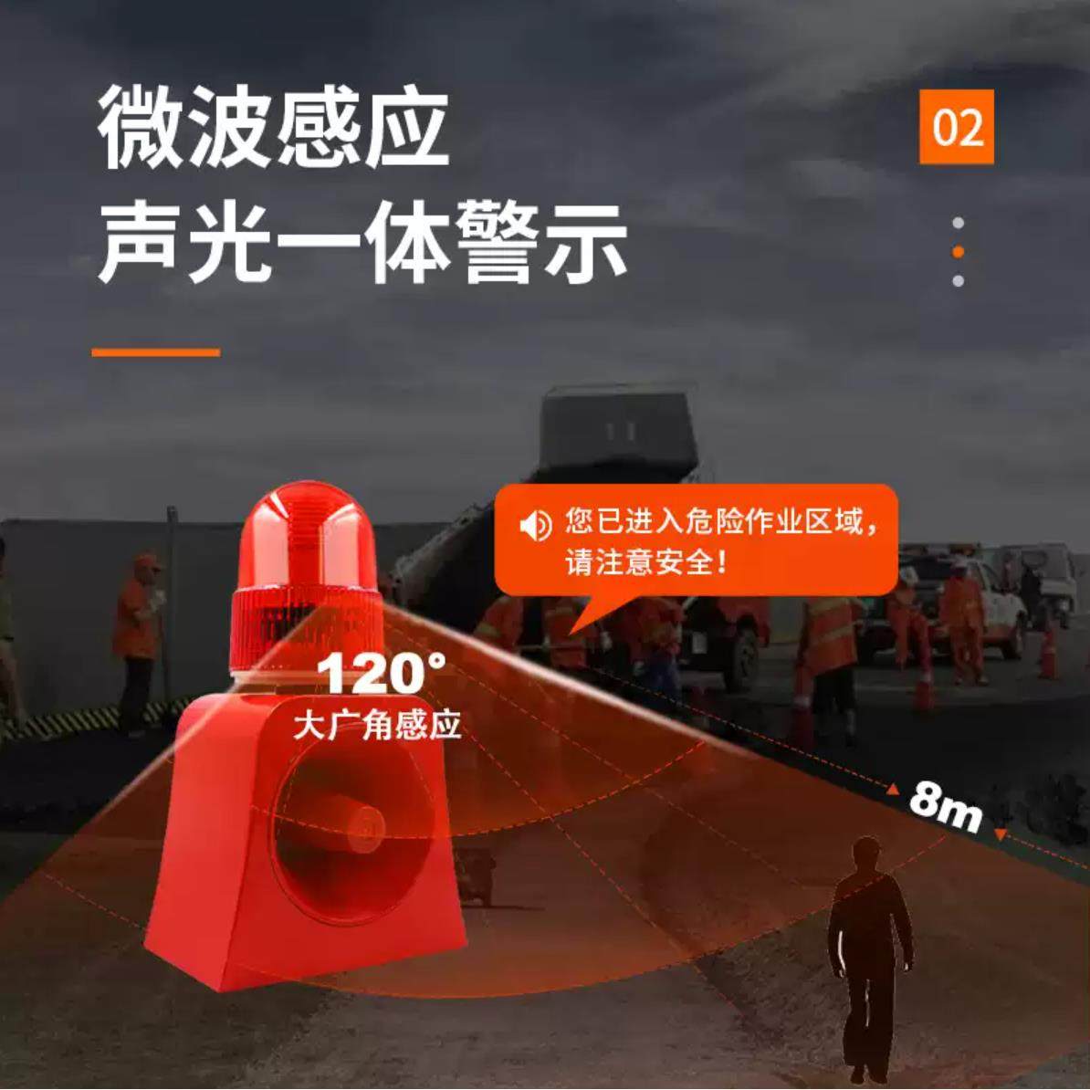 便携微波感应声光报警器高压电站声光高速道路施工声光警示报警器