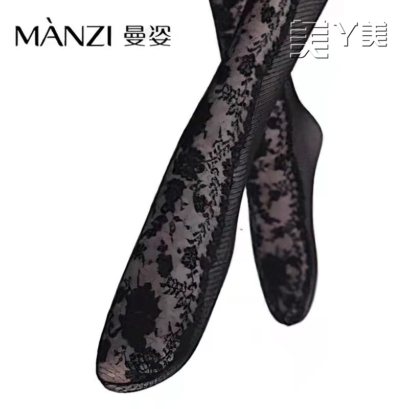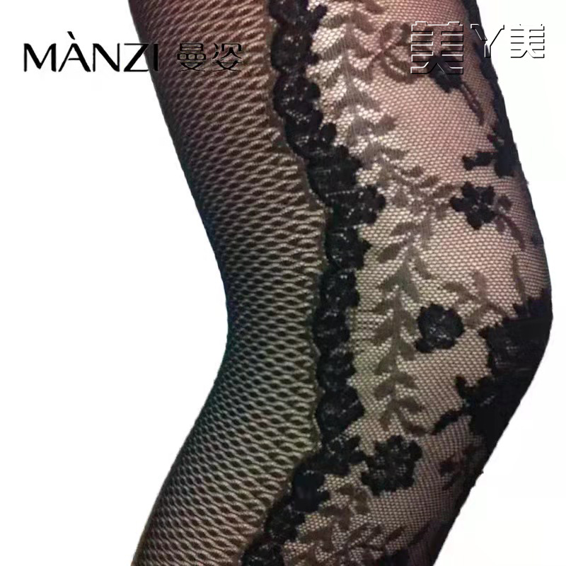 曼姿提花连裤袜一线裆黑丝袜薄袜
