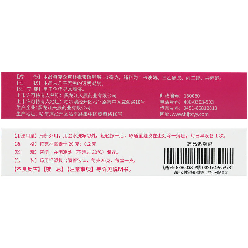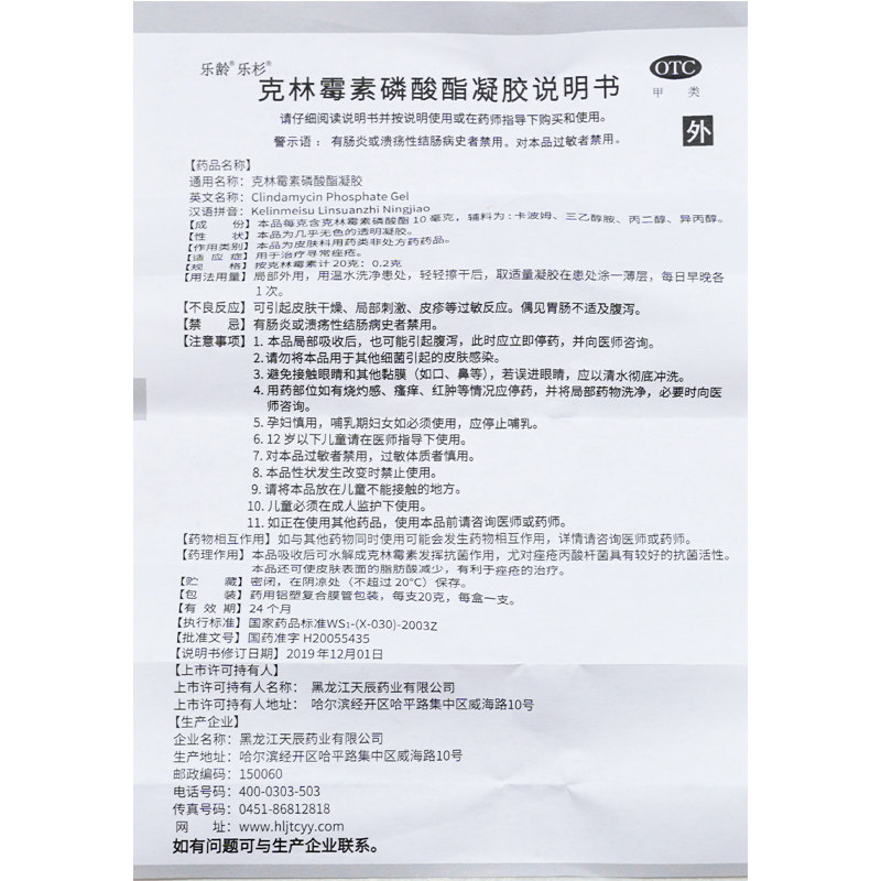 乐龄克林霉素磷酸酯凝胶祛痘20g克林毒素非克林霉素磷酸酯阴凝胶