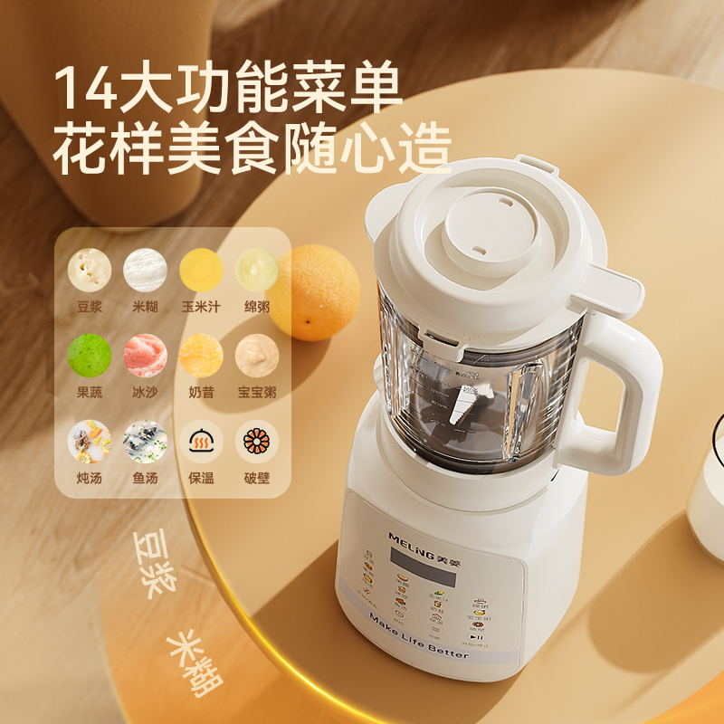 【政府补贴】美菱破壁机家用全自动煮加热轻音智能豆浆机榨汁机