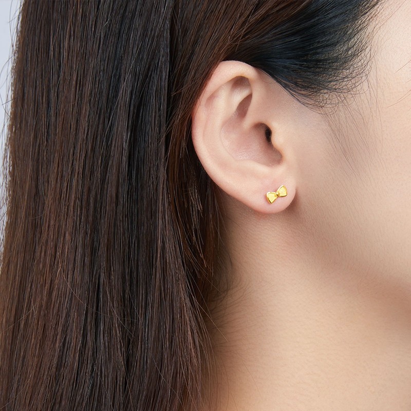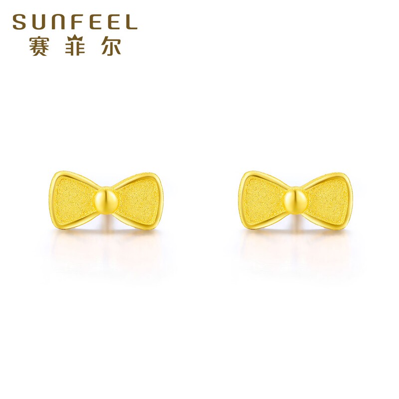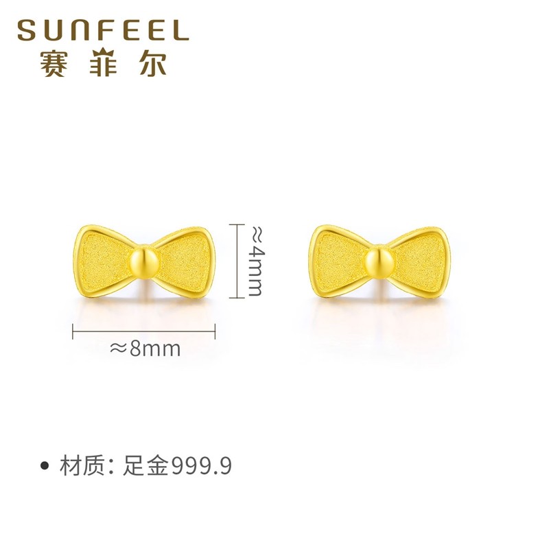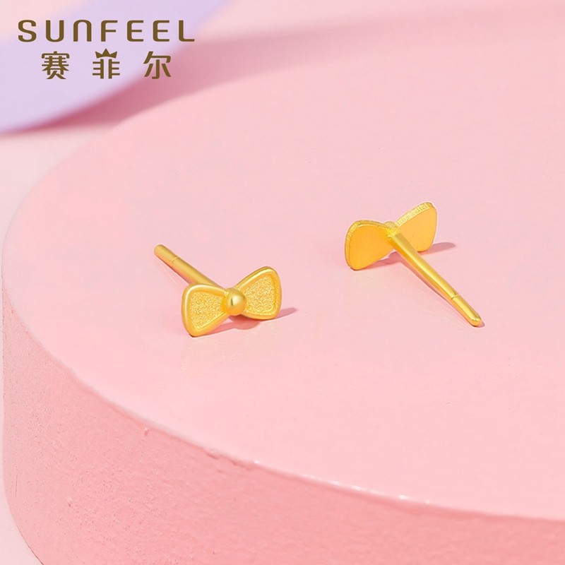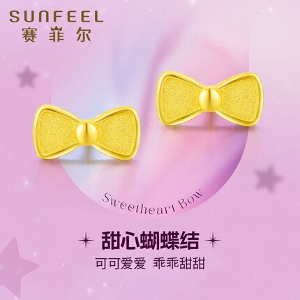 赛菲尔黄金耳饰足金999.9蝴蝶结耳钉甜美黄金耳钉迷你养耳棒送礼
