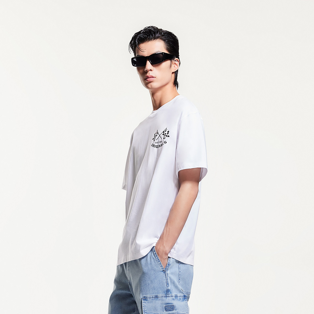 杰克琼斯男装2025年秋季新款肌理赛车旗印花男士短袖T恤纯棉打底