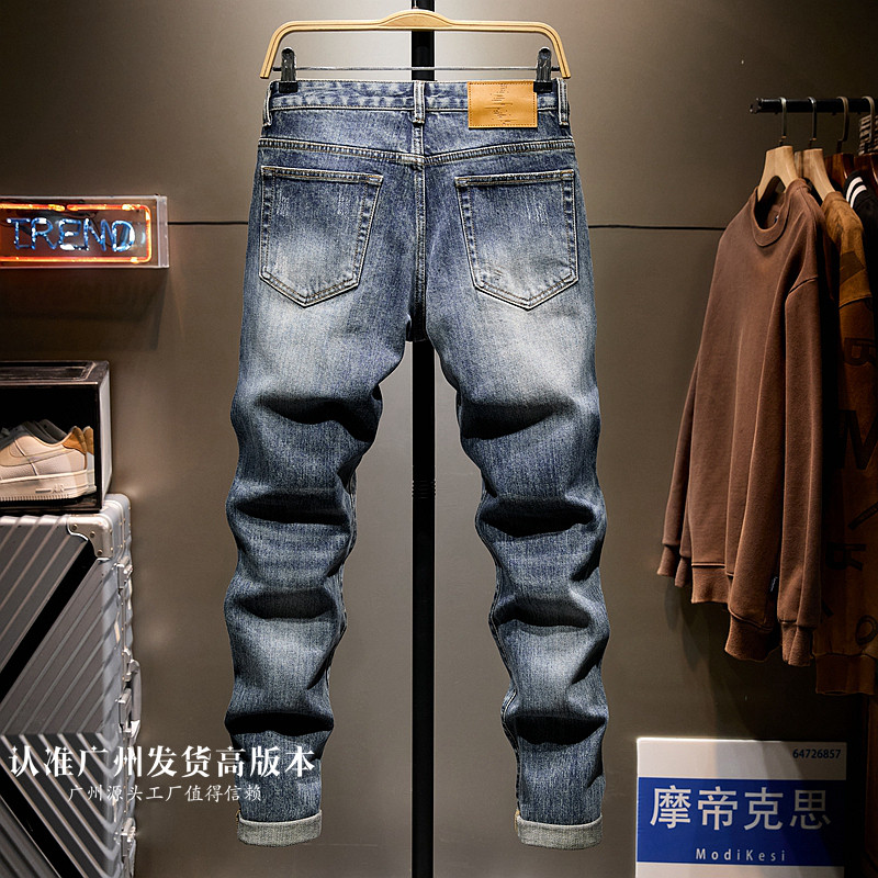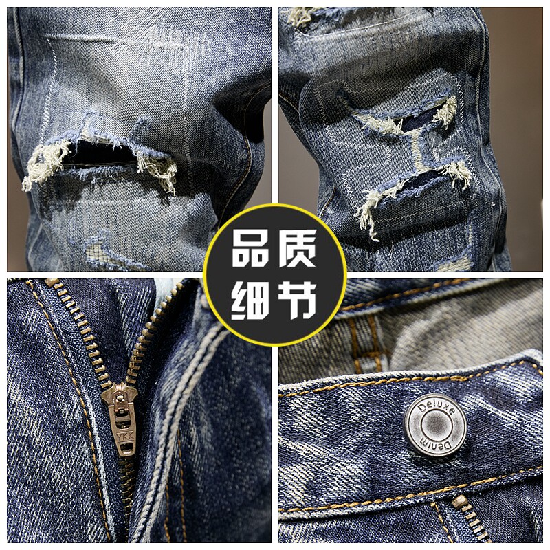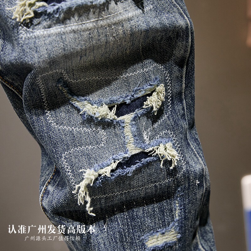 高端乞丐破洞九分牛仔裤男款潮牌痞帅补丁2026复古修身9分小脚裤