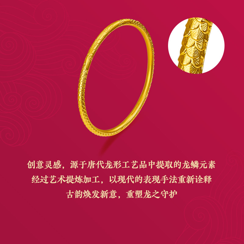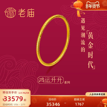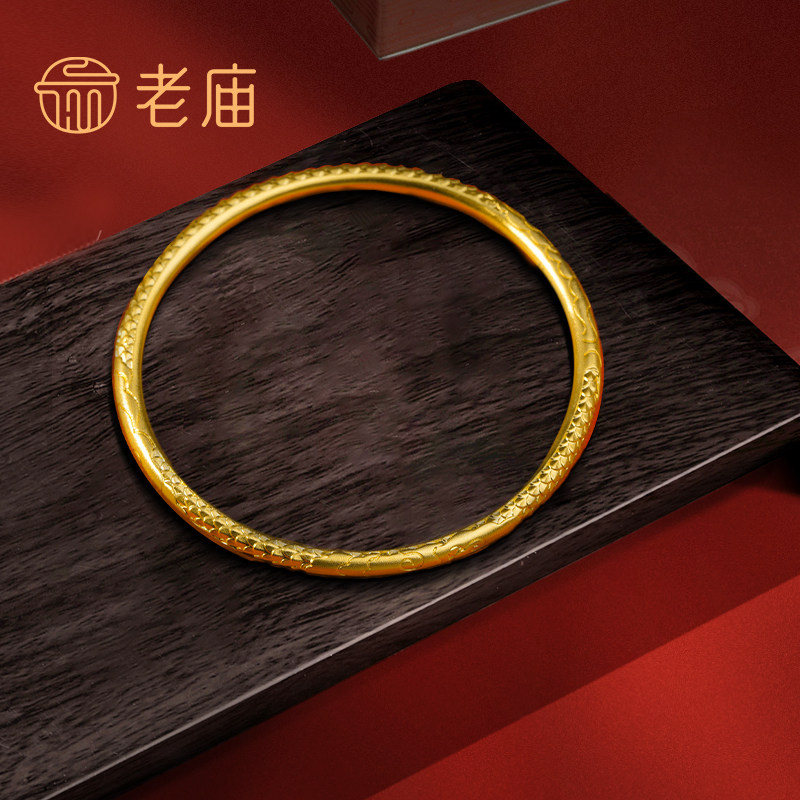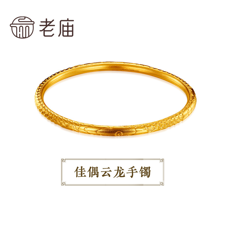 老庙黄金鸿运升升古法黄金佳偶云龙足金手镯计价婚嫁三金官方