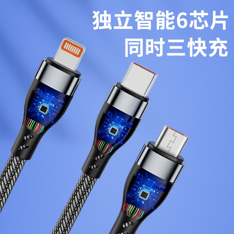 100W快充PD数据线一拖三适用华为typec苹果iPhone15闪充平板ipad安卓小米MacBook笔记本车载16多功能充电pro