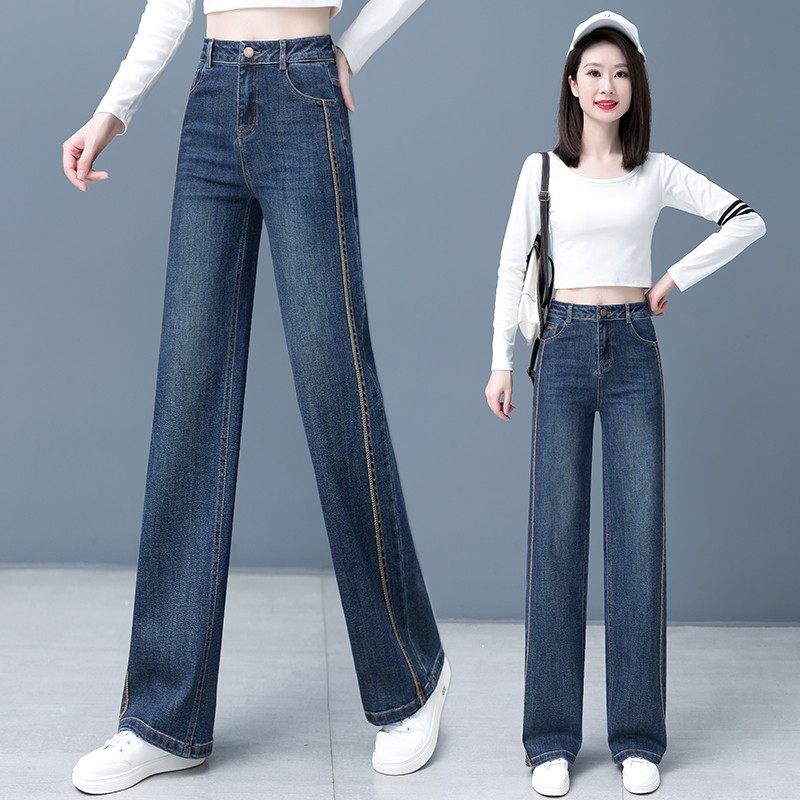 垂感窄版牛仔裤女2025初秋季新款时尚显瘦宽松高腰百搭复古阔腿裤