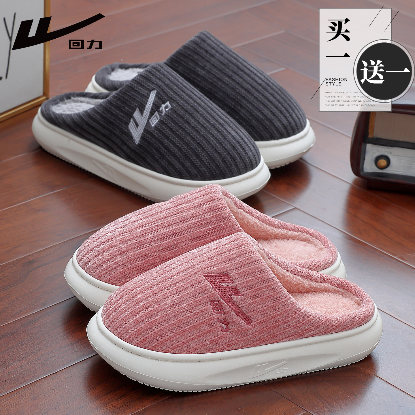 回力买一送一棉拖鞋女士秋冬季2025新款情侣家居一对保暖拖鞋男款