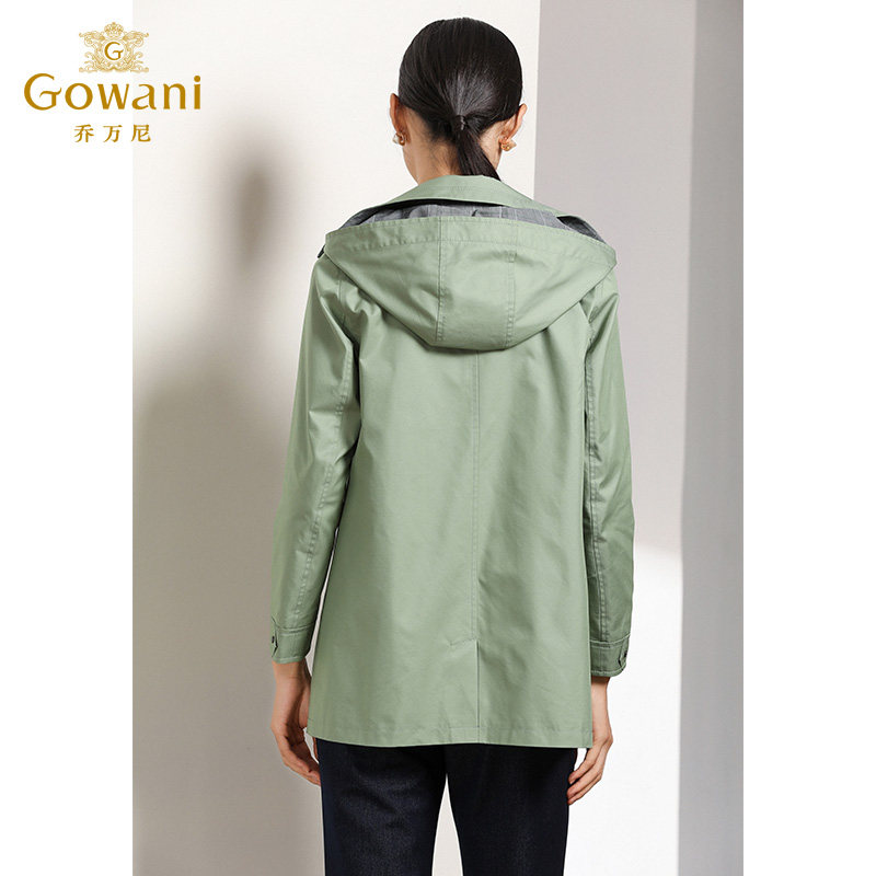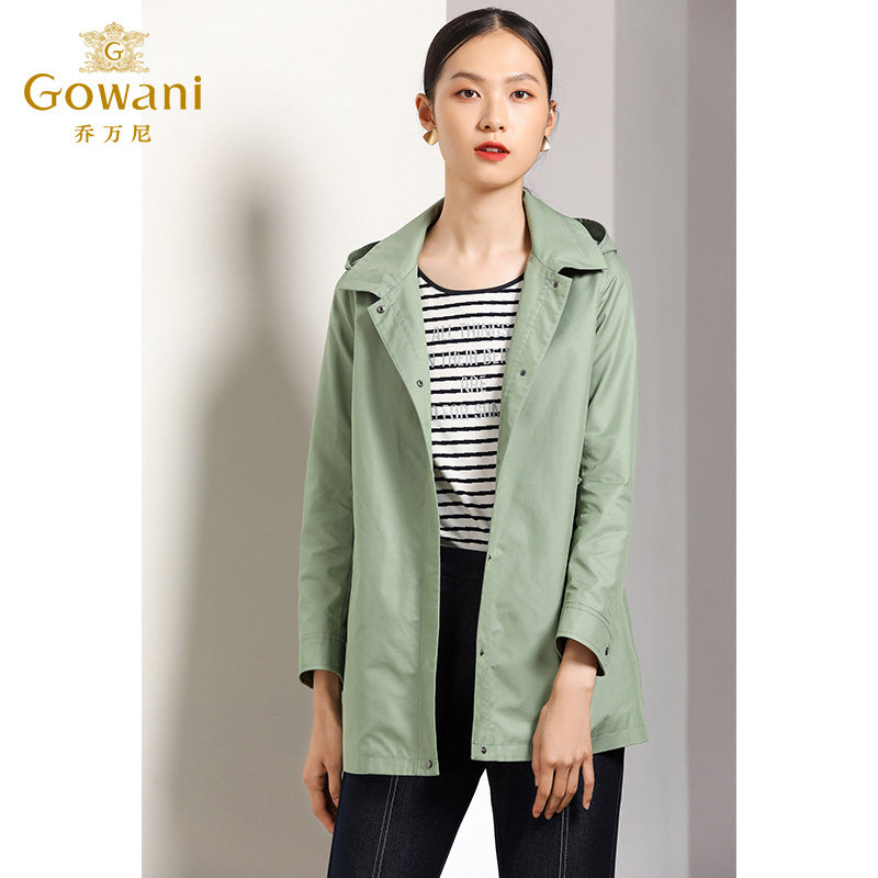 乔万尼春装女商场新款宽松直筒气质简约欧洲站连帽风衣外套女短款
