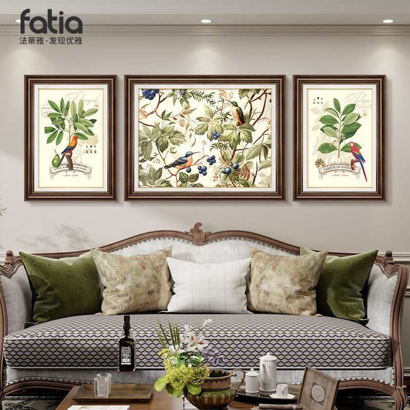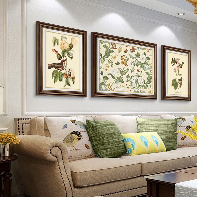 客厅装饰画美式沙发背景墙挂画2024新款高级感法式油画欧式三联画