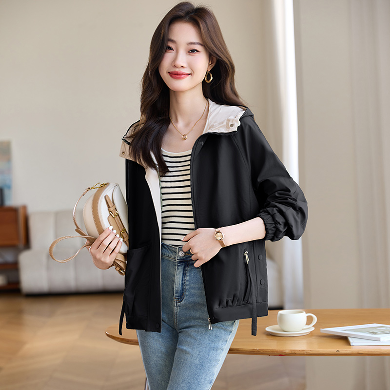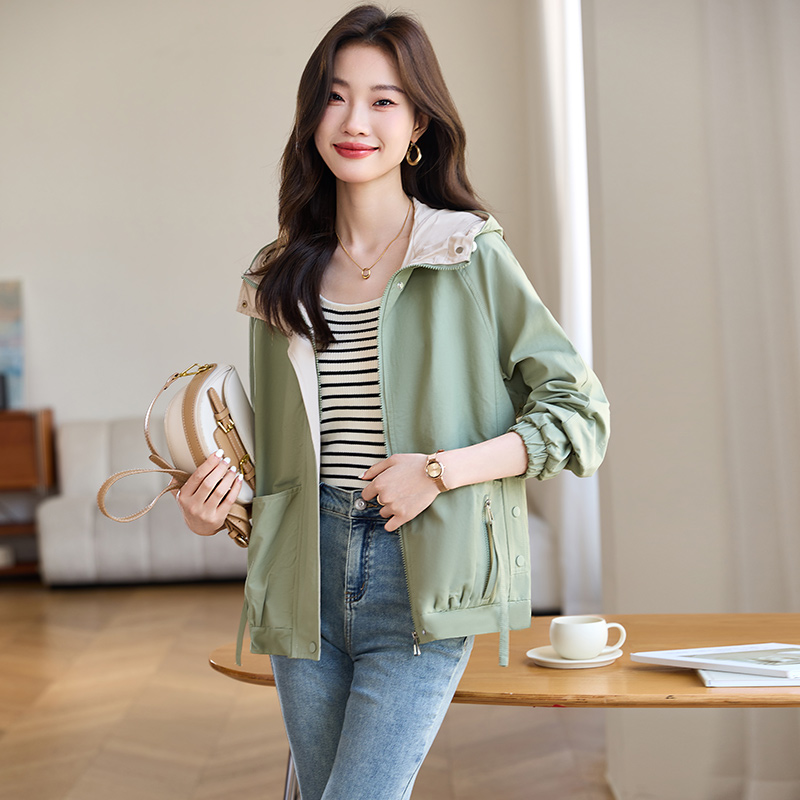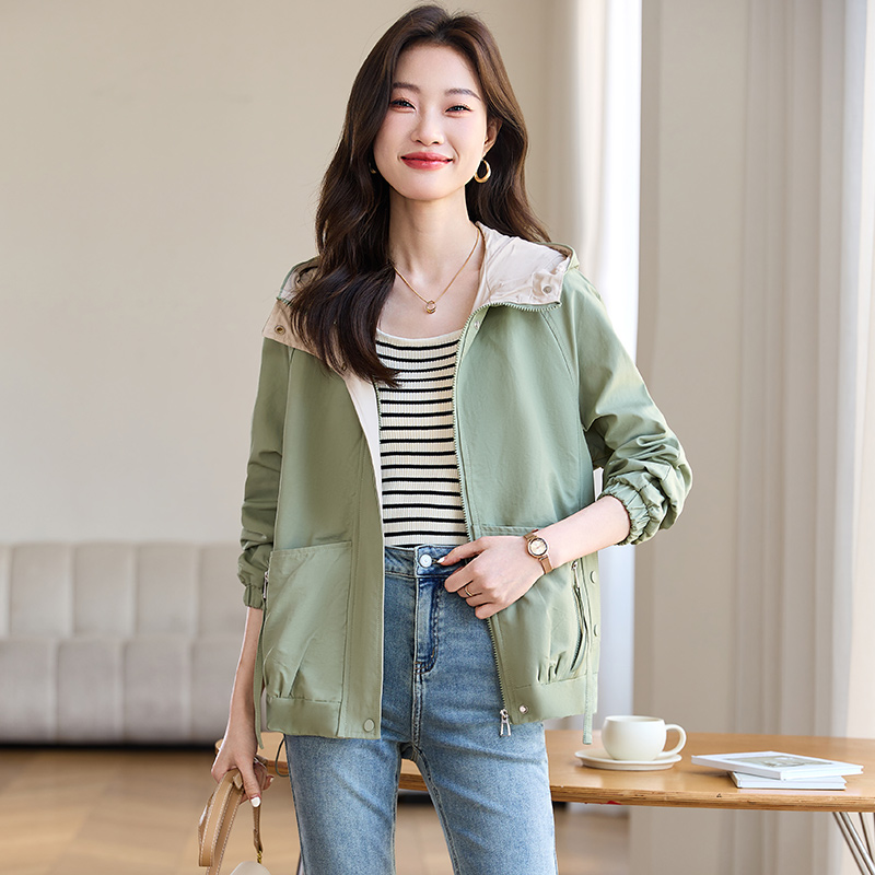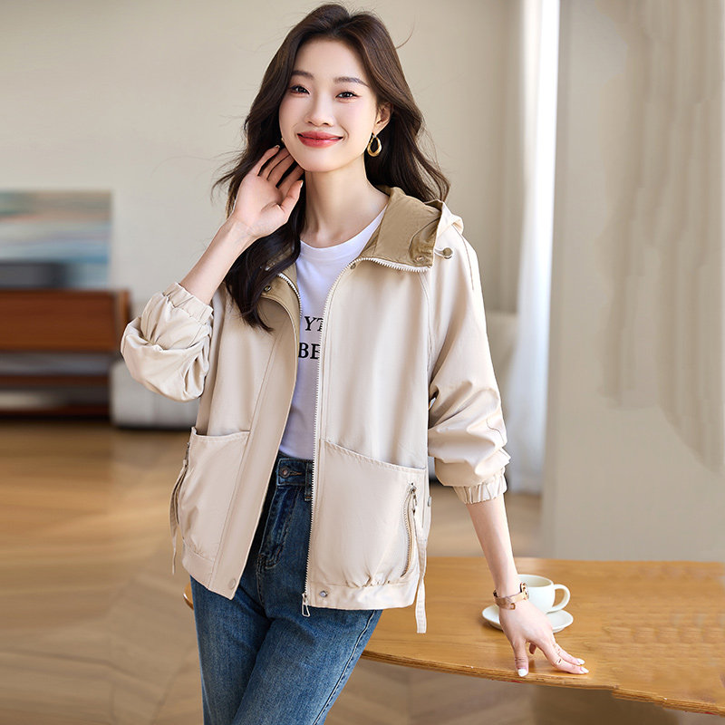 宽松减龄连帽休闲风衣短款外套女