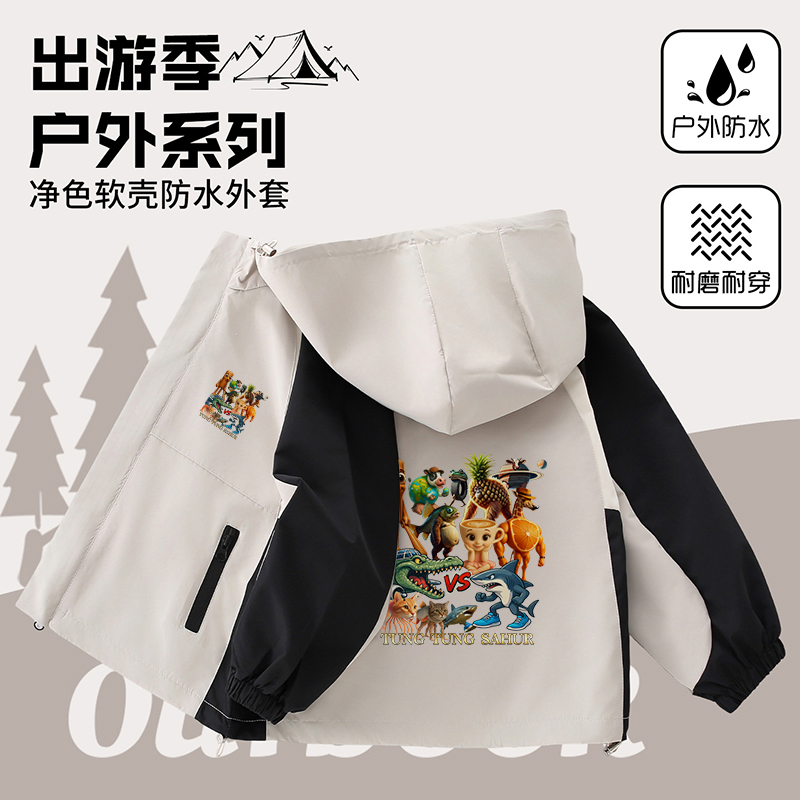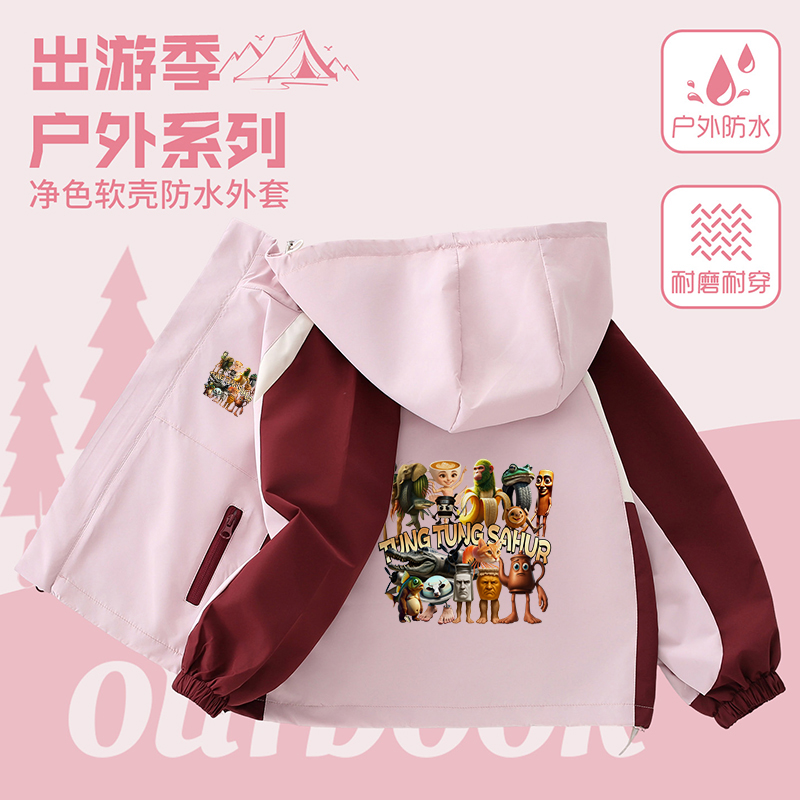 2025新款木棍人衣服国外山海经夹克外套男女童春秋冲锋衣学生上衣