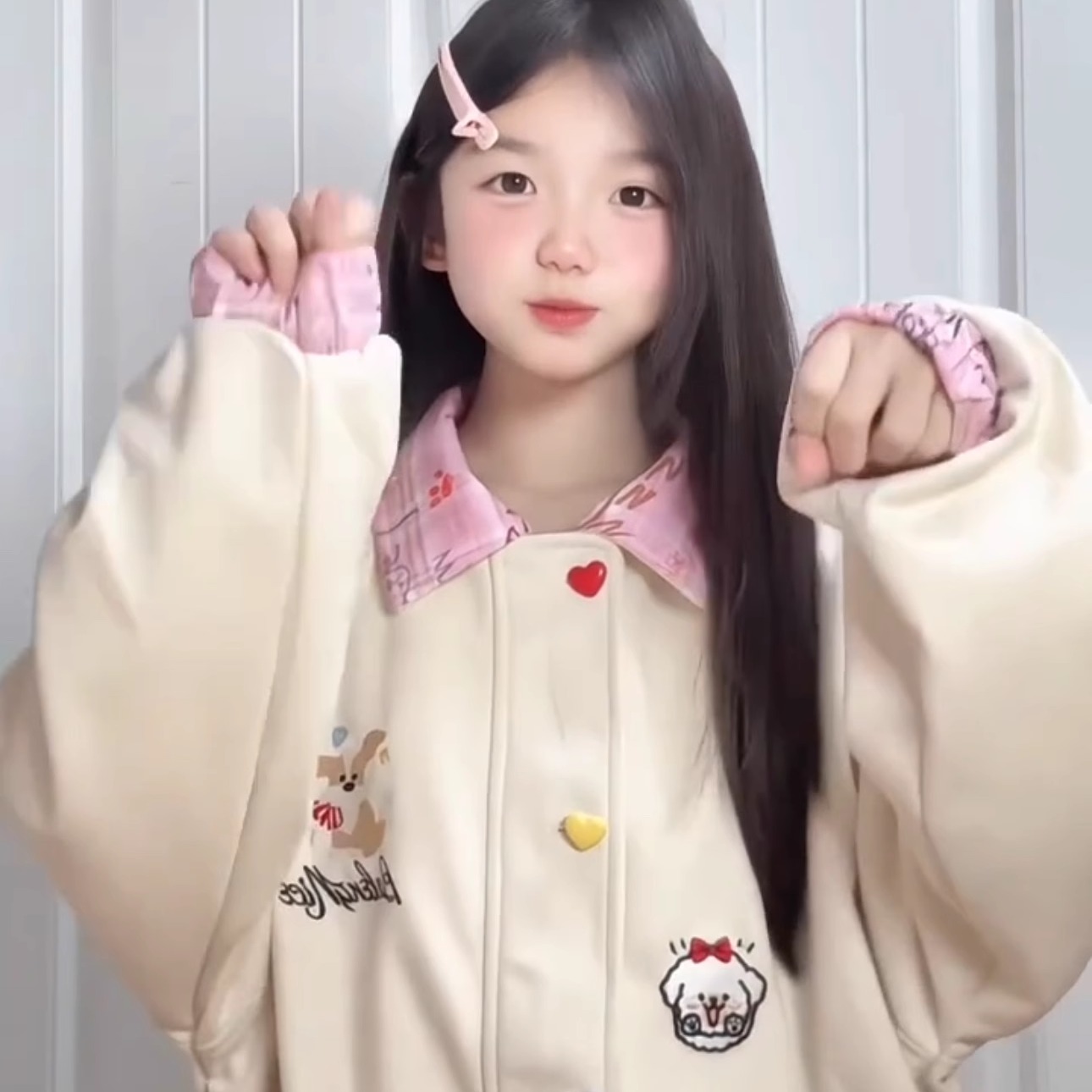 美式卡通可爱小狗刺绣棒球服外套女2025新款假两件宽松情侣款夹克