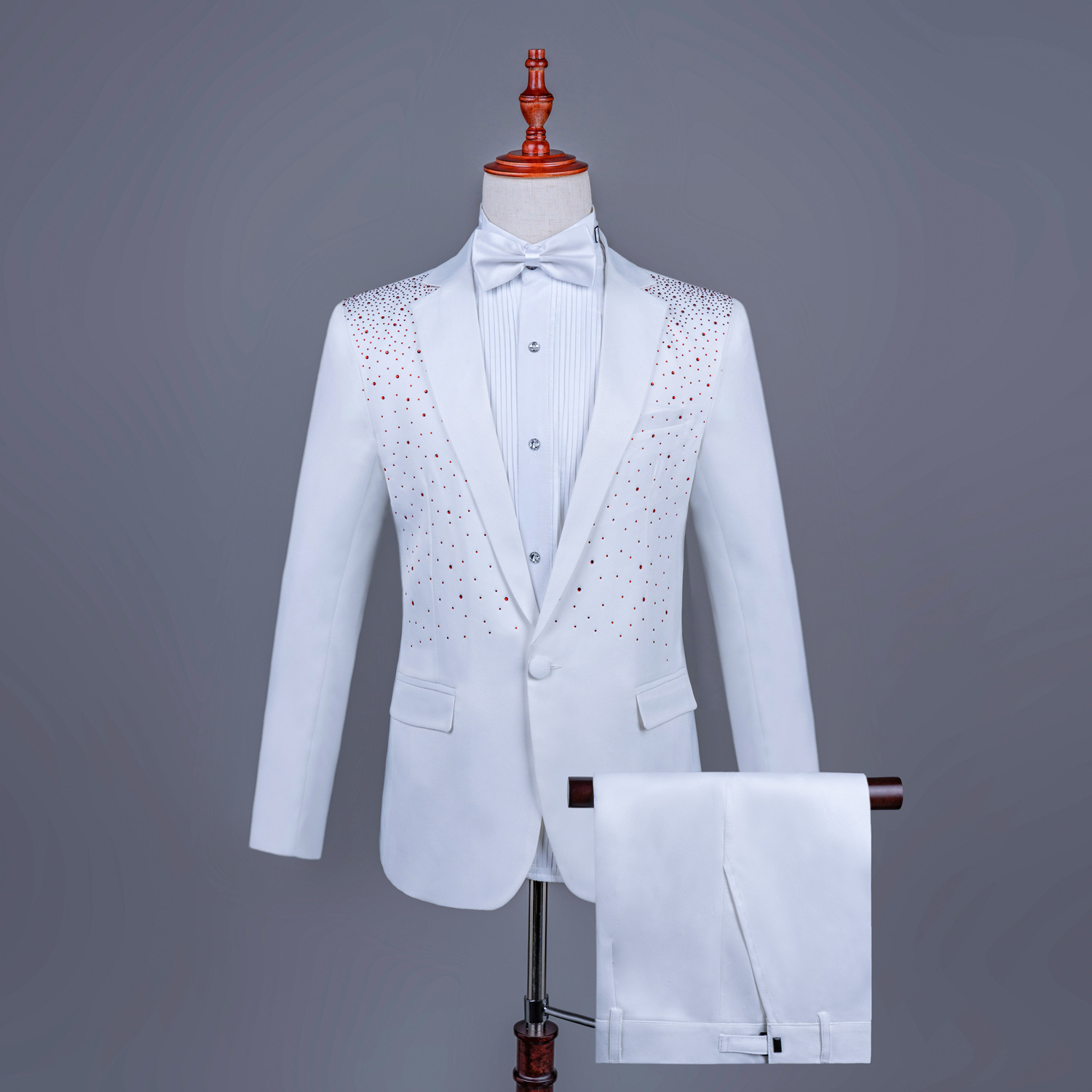 男士镶钻礼服套装晚会主持人歌手时尚演出西服舞台合唱表演西装男
