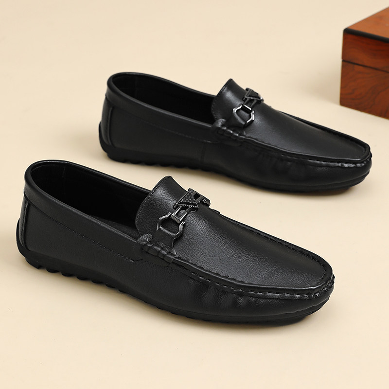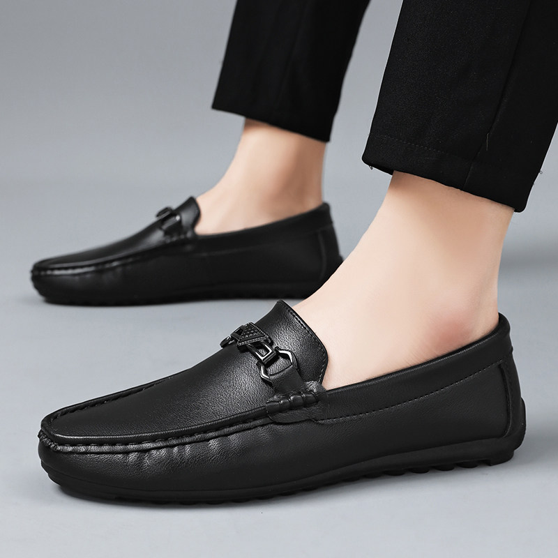 脚王KFT男鞋2025新款豆豆鞋男款真皮商务休闲皮鞋一脚蹬开车软底
