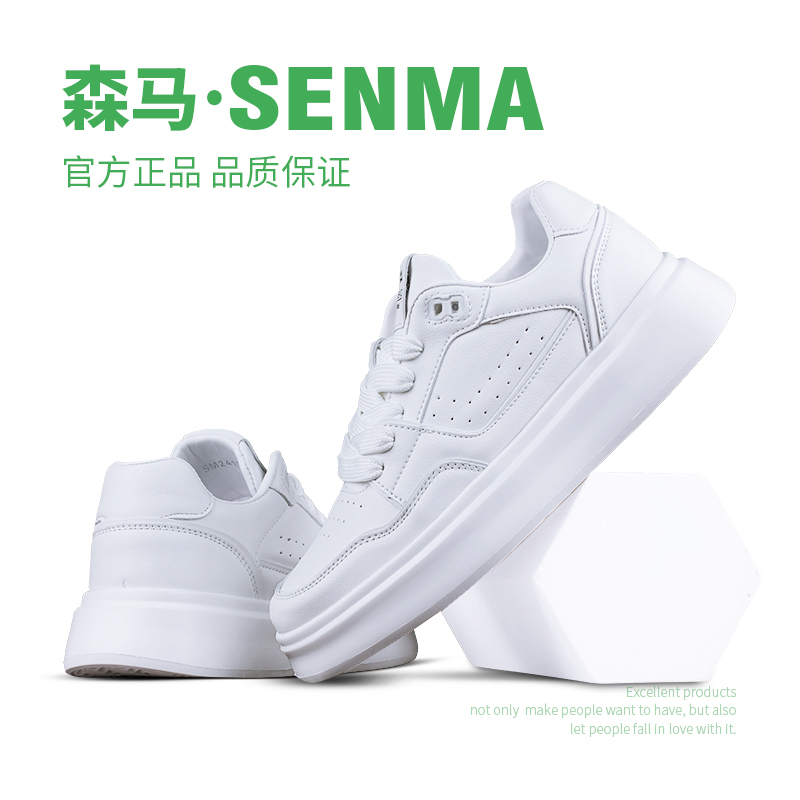 森马男鞋2025新款秋季青少年运动百搭休闲板鞋厚底增高真皮小白鞋