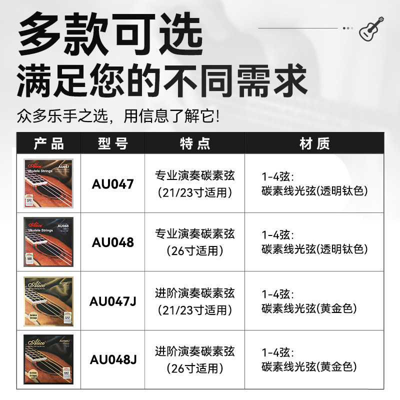 爱丽丝AU047/048尤克里里琴弦碳素小吉他套弦线Ukulele乌克丽丽弦