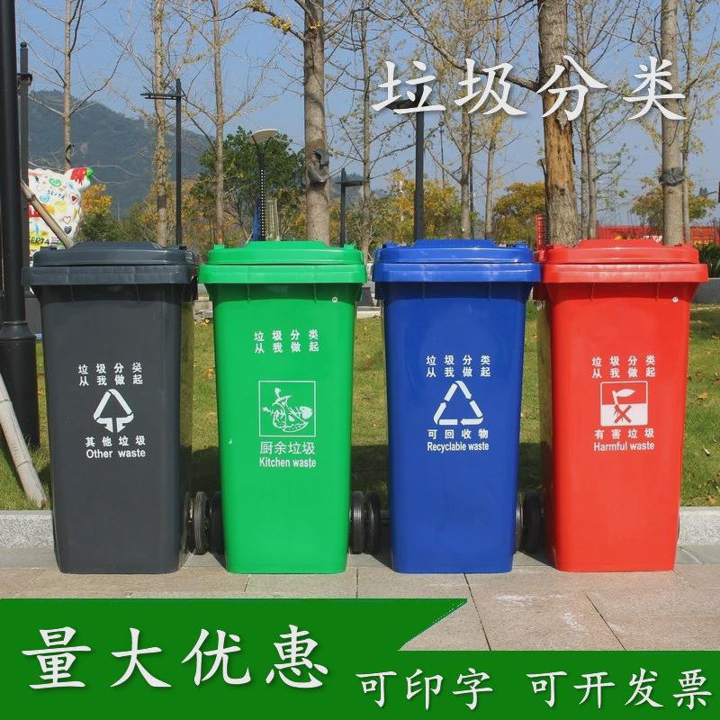 户外大码塑料加厚带轮带盖分类垃圾桶240L工业可挂车环卫清洁桶