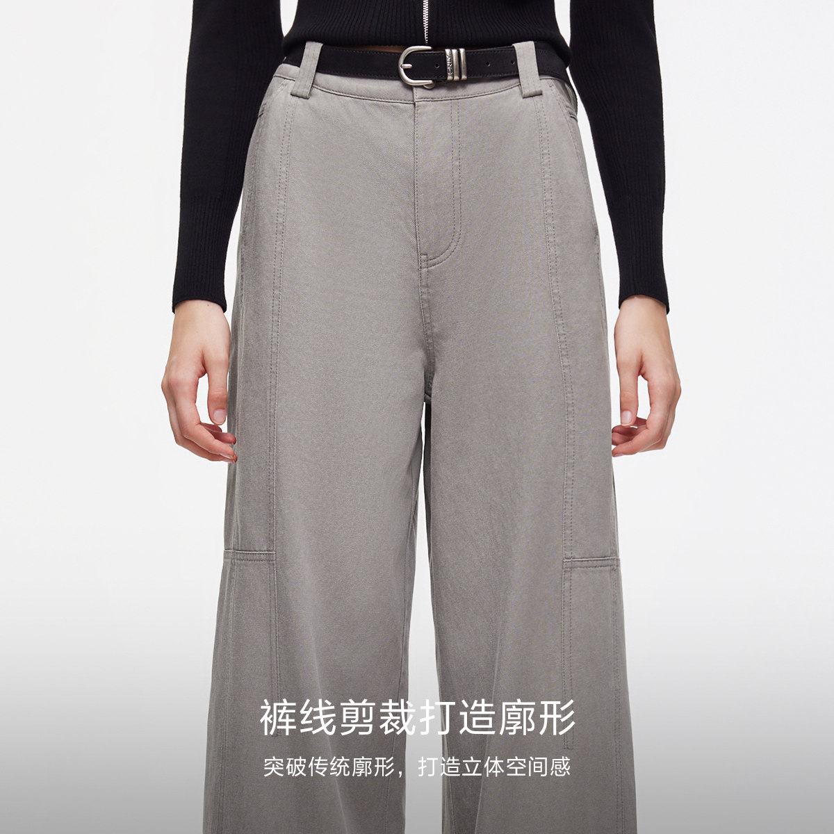 ONLY2025冬季新款弧线剪裁分割高腰显瘦宽松长裤阔腿裤休闲裤女